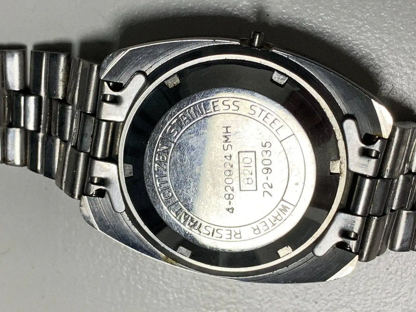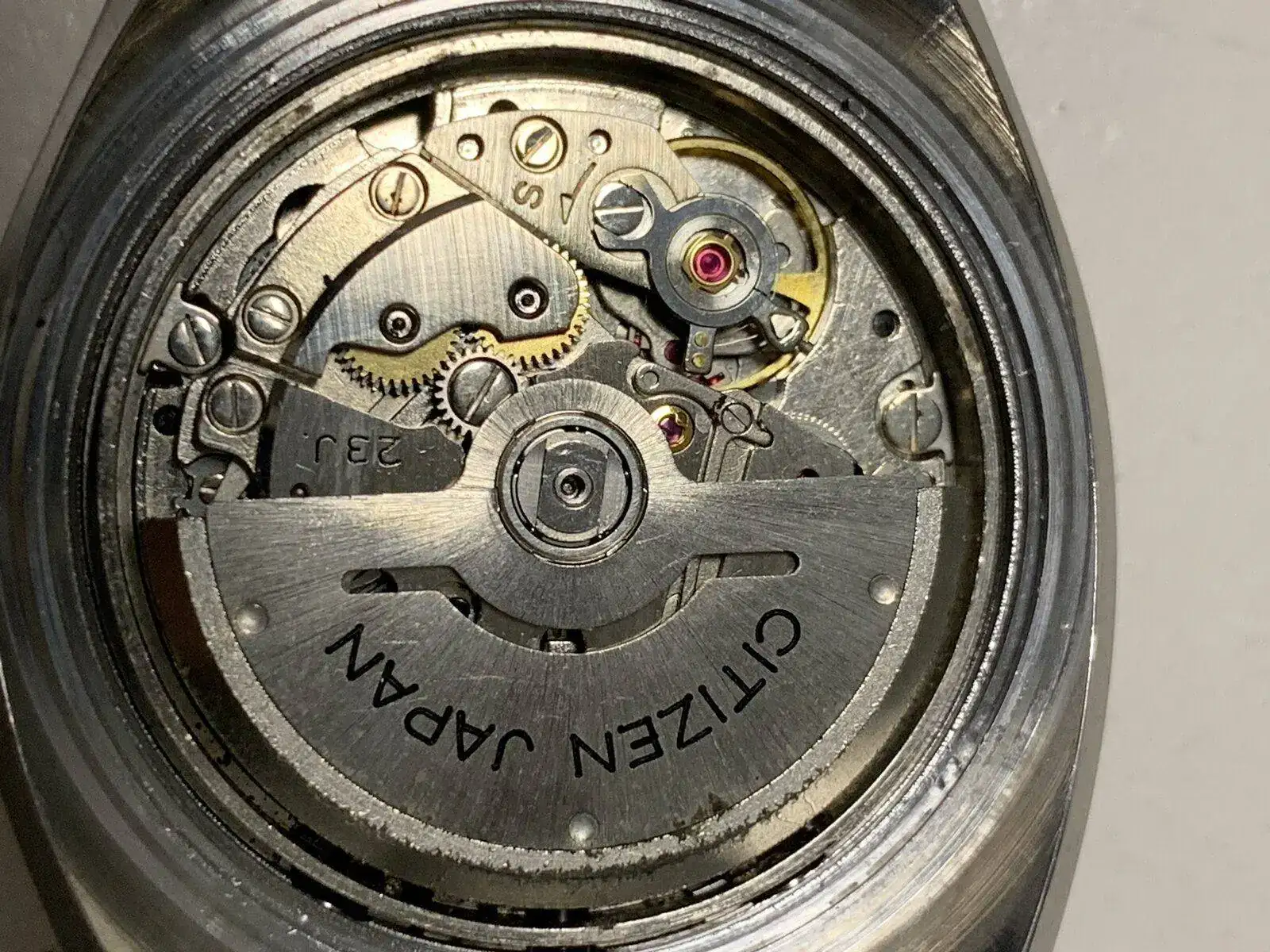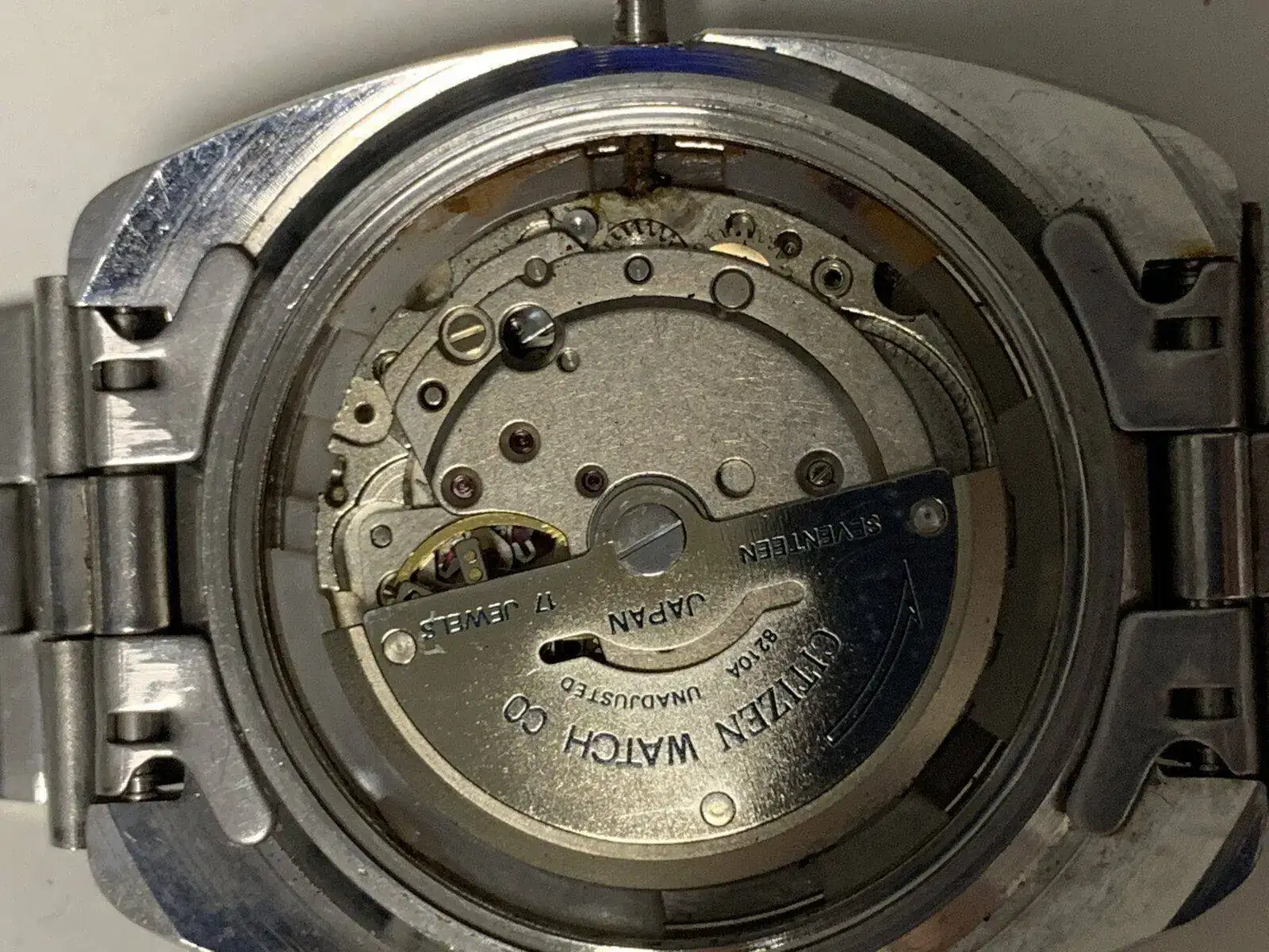 Uno es el Citizen mod. 4-820924. Le falta la corona y al quitarle la tapa parece que muestra un poco de oxido en la zona por donde entraba la tija. No le he hecho nada Y parece no funcionar ni tan siquiera moviendo el contrapeso. El armis parece el original.