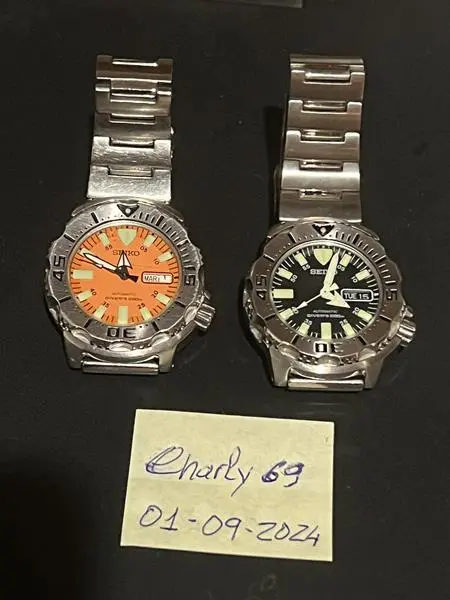 Hola, sigo sacando relojes y cosas que no me pongo, en este casi se trata de una pareja de Seikos Monster, color negro y naranja.
