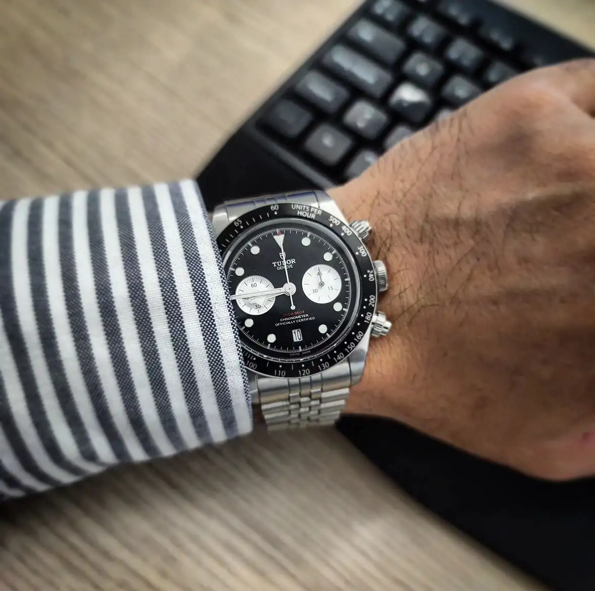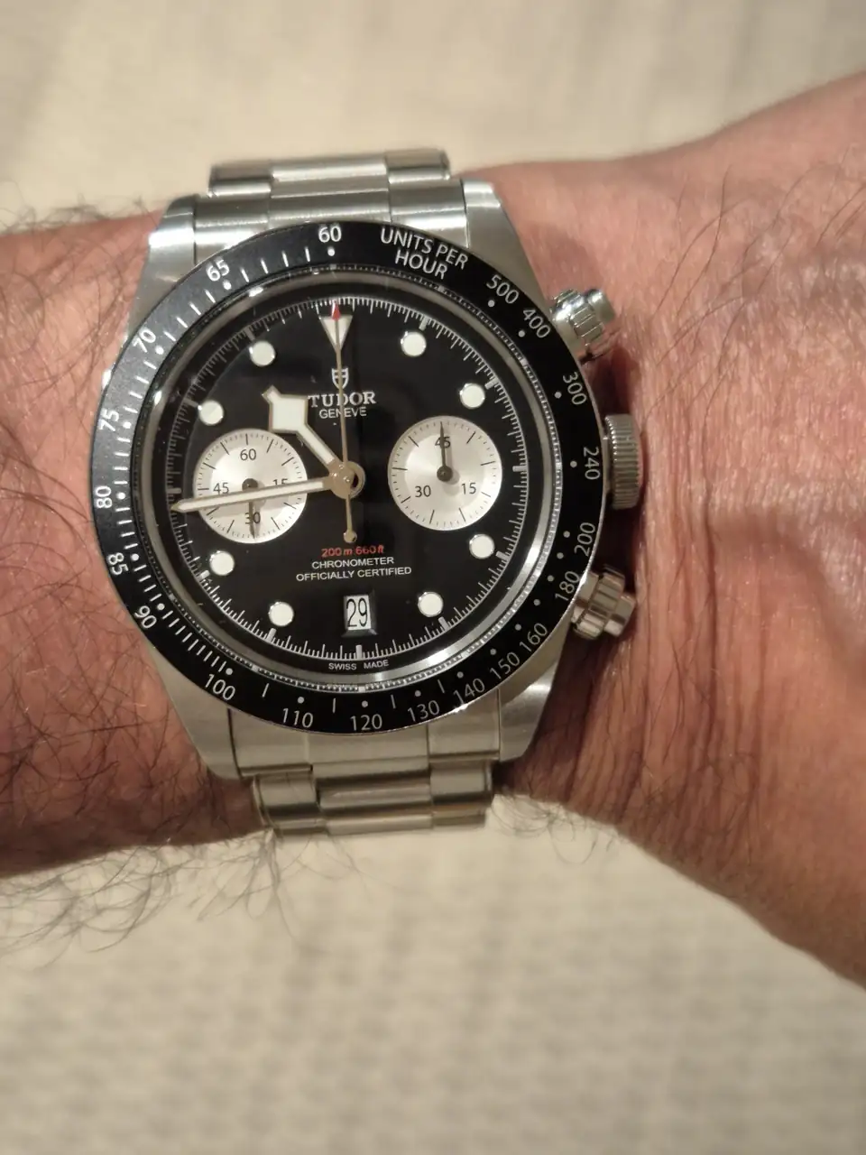 Pues un poco si, jajaja. Ahora mismo estoy probándome los 2 el BB chrono y el Speedmaster. Lío y no me decido, me gustan los dos.Los crono del black bay son muy mazacotes, pero es que son así. Tienes que tenerlo claro porque a la larga no te vas a acostumbrar, creo que más bien al contrario. Pondrás el Sub y luego ese te parecerá grande siempre. En el foro hay muchos que están contentos con ellos, pero como otros relojes “mazacotes”, los que están contentos con ellos es porque les gusta el reloj grande y “potente”, quiero decir con esto que te tiene que gustar.