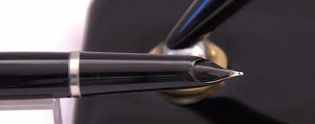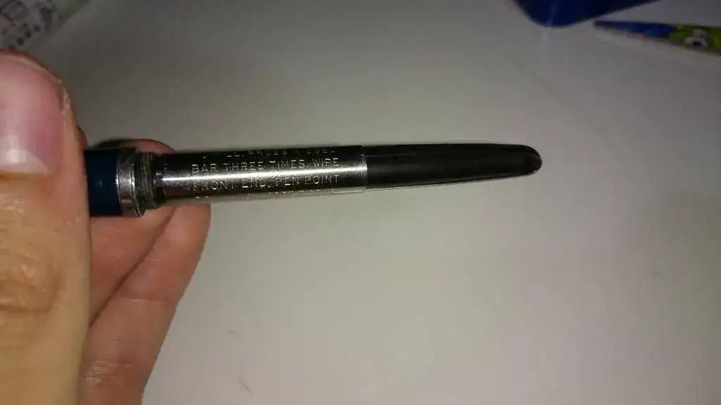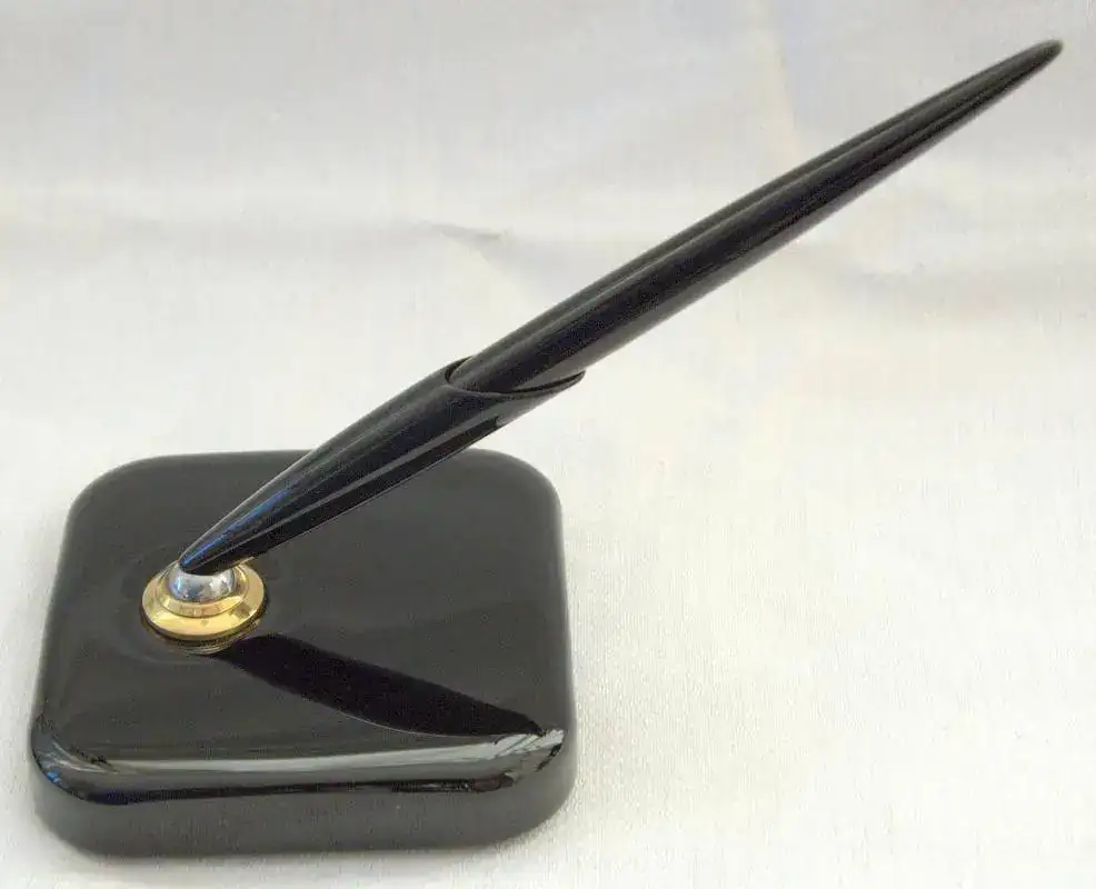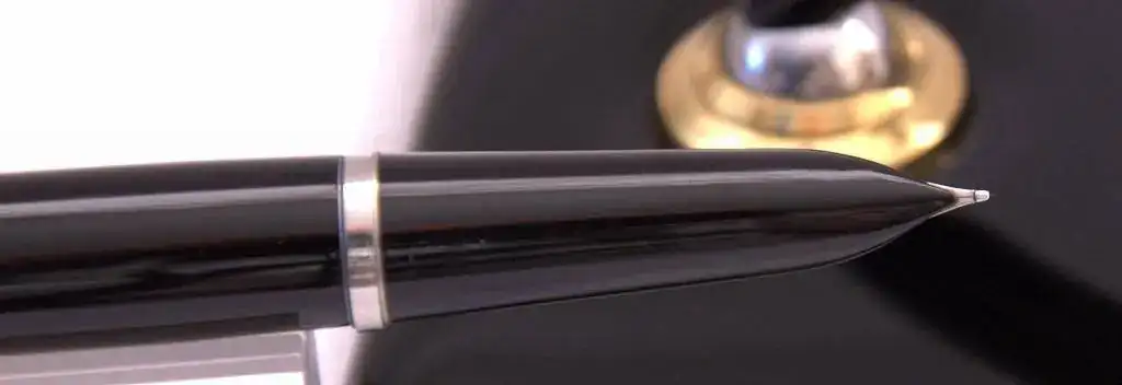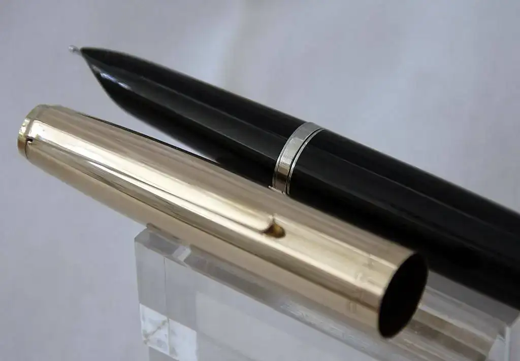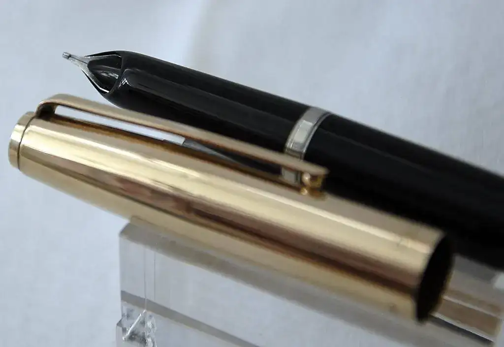 - La super 21 tiene un sistema distinto, el plumín es como el de las 51- circular con corte transversal tambien de octanium y la boquilla de la Super 21 es más pequeña, a diferencia de las Mark! y Mark II que son grandes, anexaré varias fotos de varios modelos todas Mark I y Mark II y una de estas en el modelo DESK o de escritorio, es la misma pluma Mark II pero con base de vidrio negro, el Cap está en la base y gira con una bola sobre un imán y el barril grande es largo y afilado, estas plumas son para tener en la mesa, yo tengo unas 3, una con cada color, las tres reparadas de grietas, quedan bien aunque se nota. Sin daño alguno, intactas valen más de 20€, las he visto en el Pen Show a 60€ a conocidos y publicados profesionales, también hay modelos con Cap de Luxe y Cap de Oro, bajo mi punto de vista, es una de las plumas que mejor escribe pero de las más frágiles, sin embargo entre mis juegos de 21, de varios colores, siempre llenas de agua, siguen vivas, no sé por cuanto tiempo, pero ahí están.