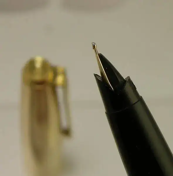 La pluma tiene un plumín de oro de trazo Medio, suave y rígido (IR>5).