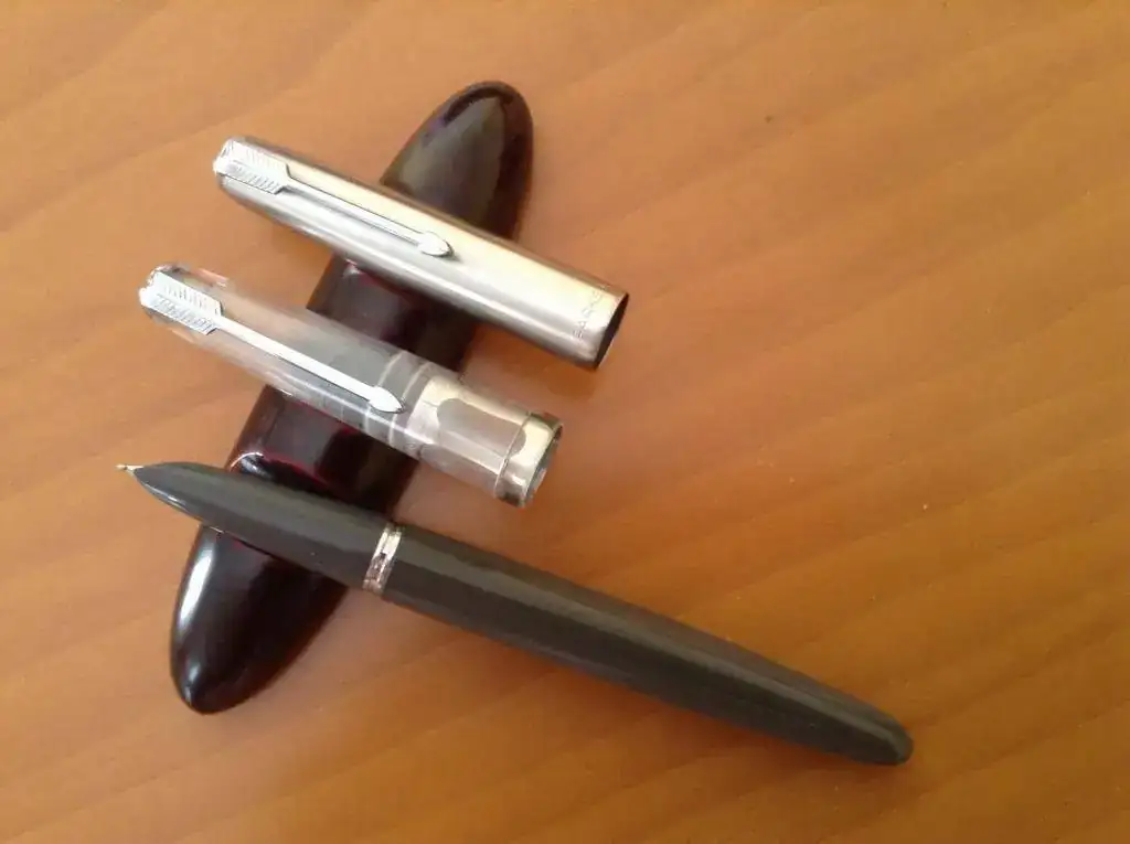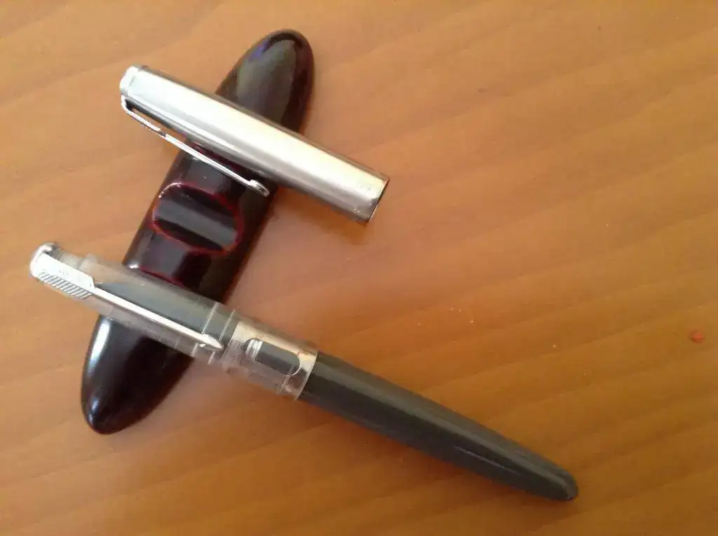 Por falta de uso pongo a la venta está Parker 51 aerométrica demi (un poco más corta que la normal, con capuchón mide 13,3 cm) en cuerpo gris con capuchón demonstrator de Ariel Kullock. Lleva también el capuchón de lustraloy original, que tiene el clip un poco levantado (no sujeta bien contra la camisa, se ve en la segunda foto. Es un ajuste fácil si tienes la herramienta). Por lo demás perfecta. Punto M muy suave.