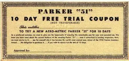 Parker 51. Cupón de prueba antiguo. ¿No os parece una excelente idea?