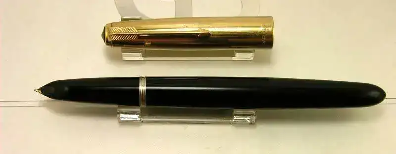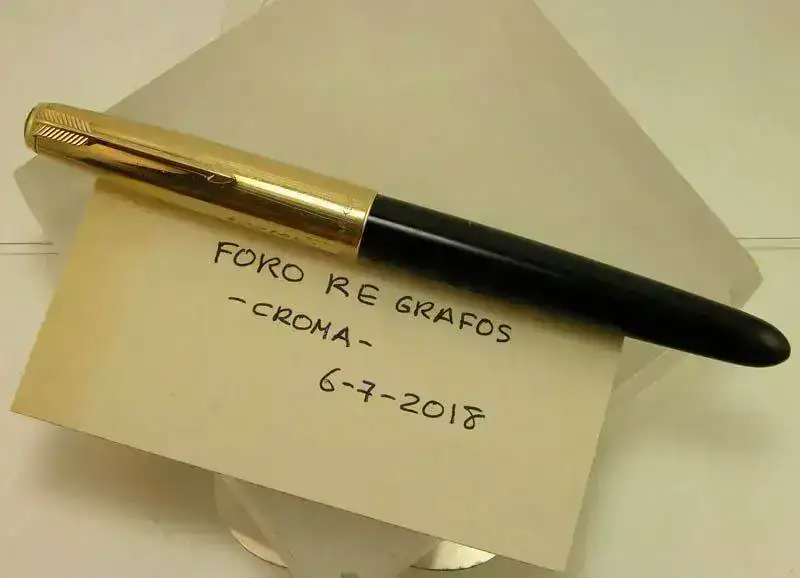 Ofrezco para su venta esta estilográfica PARKER 51 en resina negra con capucha dorada.