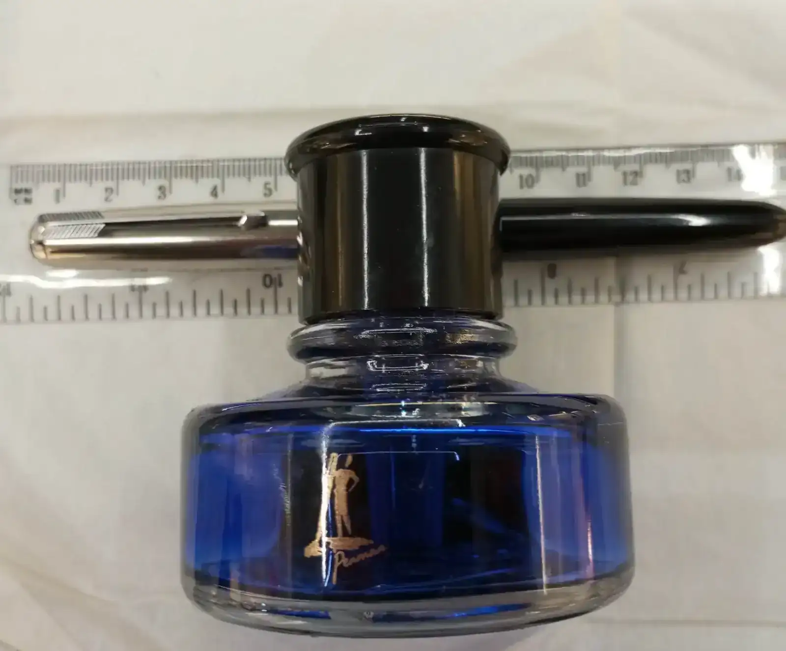El tintero no contiene la tinta original. Pero es uno de los más apreciados de esta serie de parker "Penman" que tuvo cuatro colores.