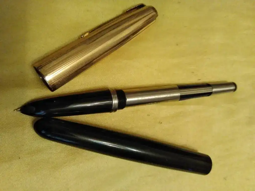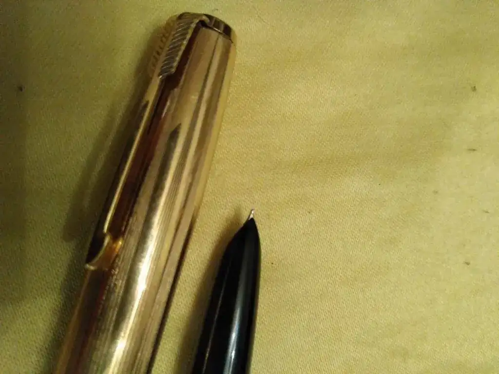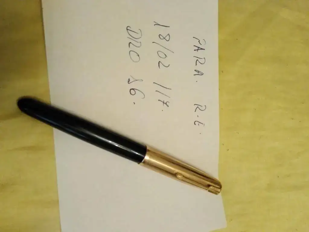 Saco a la venta esta Parker 51 negra en un estado impecable. El capuchón no está deformado y su dorado es perfecto. Igualmente el cuerpo está muy bien y el plumín tiene el punto practicamente nuevo. la joya del capuchón tiene un agradable tono azulado y tiene grabado en la base: El símbolo de Parker, MADE IN USA, 1/10 12K GOLD FILLED.