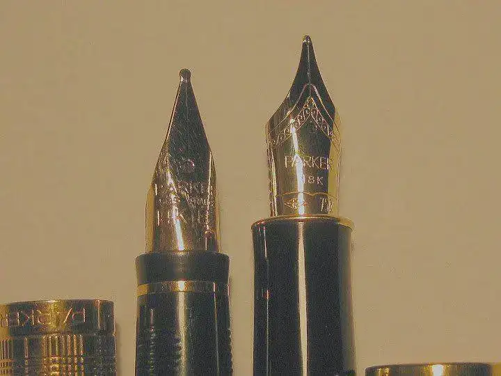 Les presento ahora una Parker 51 Signet, también llamada Insignia; esta pluma totalmente chapada en oro de 12 K, tiene el sistema de carga aerométrico de la casa, y en el propio sistema tiene las instrucciones para la carga con tinta durachrome, por lo que se infiere la edad de la pluma, eln capuchón y barril comparte un adorno grabado de líneas verticales, y en la corona se encuentra la joya de Parker en color gris.