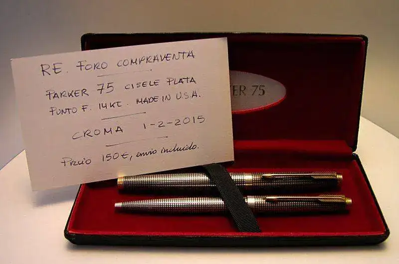 Ofrezco para su venta este juego de Estilográfica y Bolígrafo Parker 75 Ciselé en Plata Sterling.