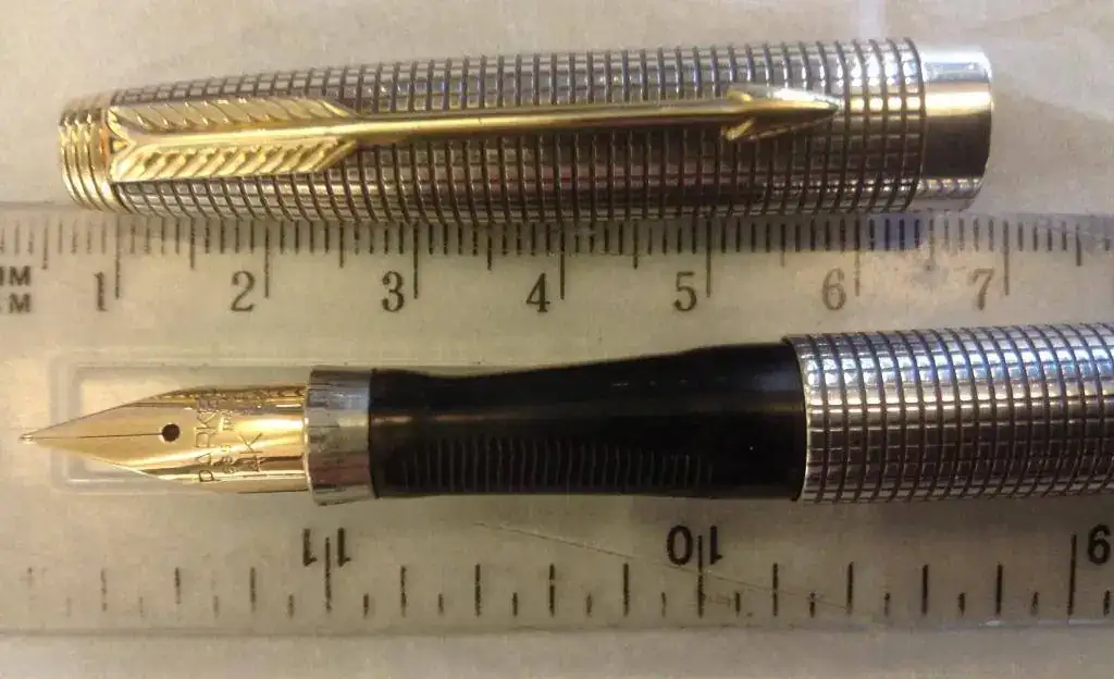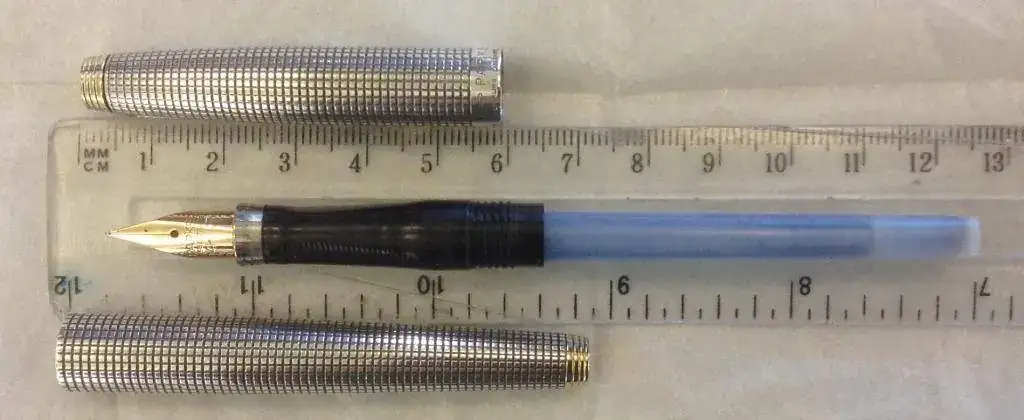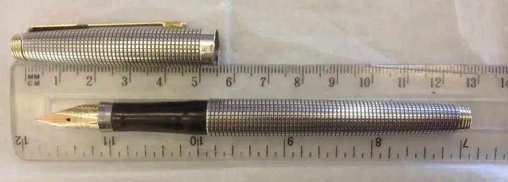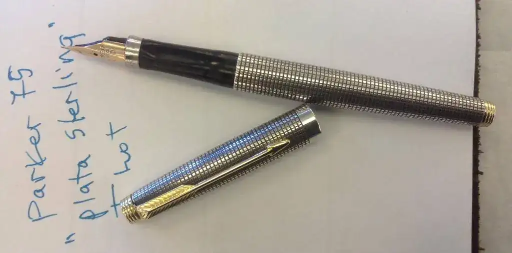 Esta Parker 75 sterling silver es una de las mejores plumas construidas por Parker, en mi opinión. Ha soportado muy bien el paso del tiempo y su diseño practico y funcional la ha hecho una de mis plumas preferidas. El plumín, en oro de 14 k es de trazo fino y de extrema suavidad.