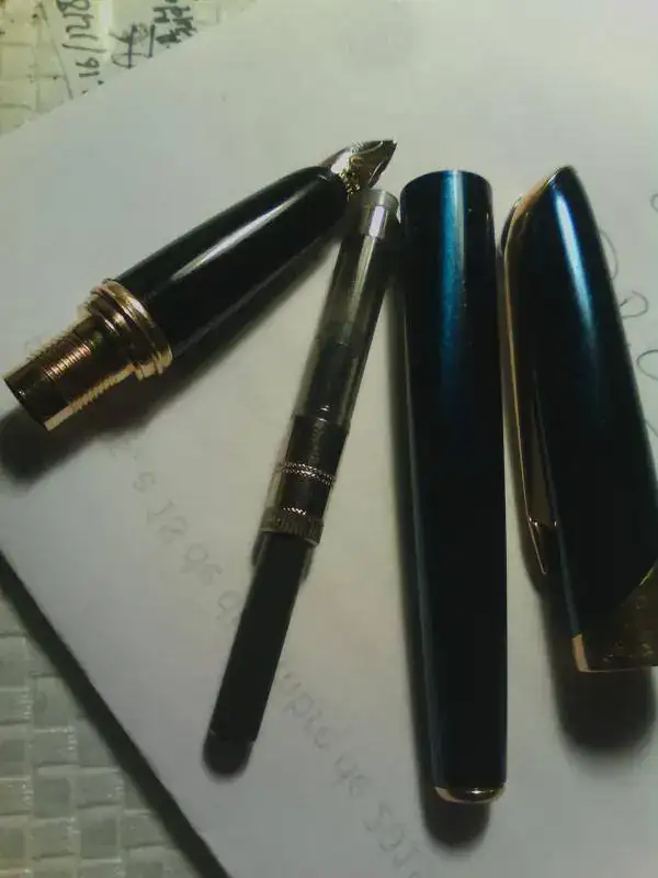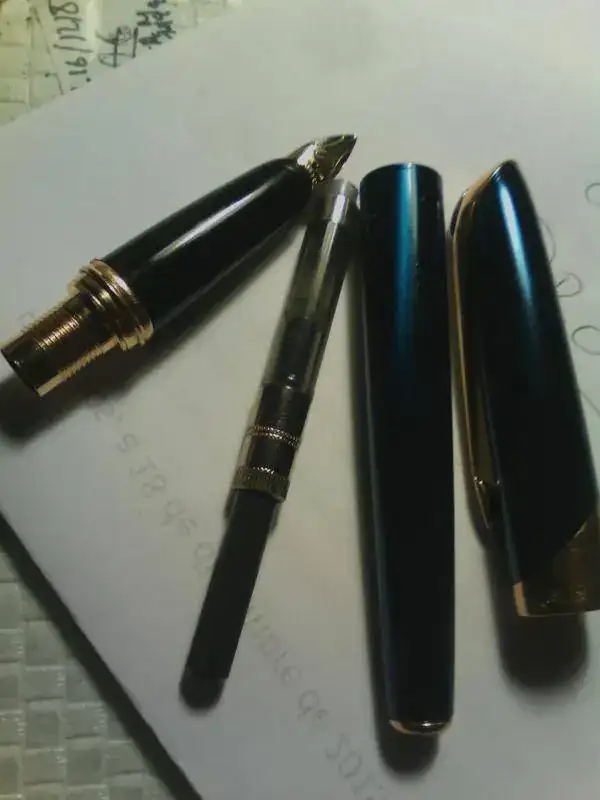 Ofrezco esta parker ellipse azul con plumin f, que va muy suave, algo de uso, pero sin defectos.