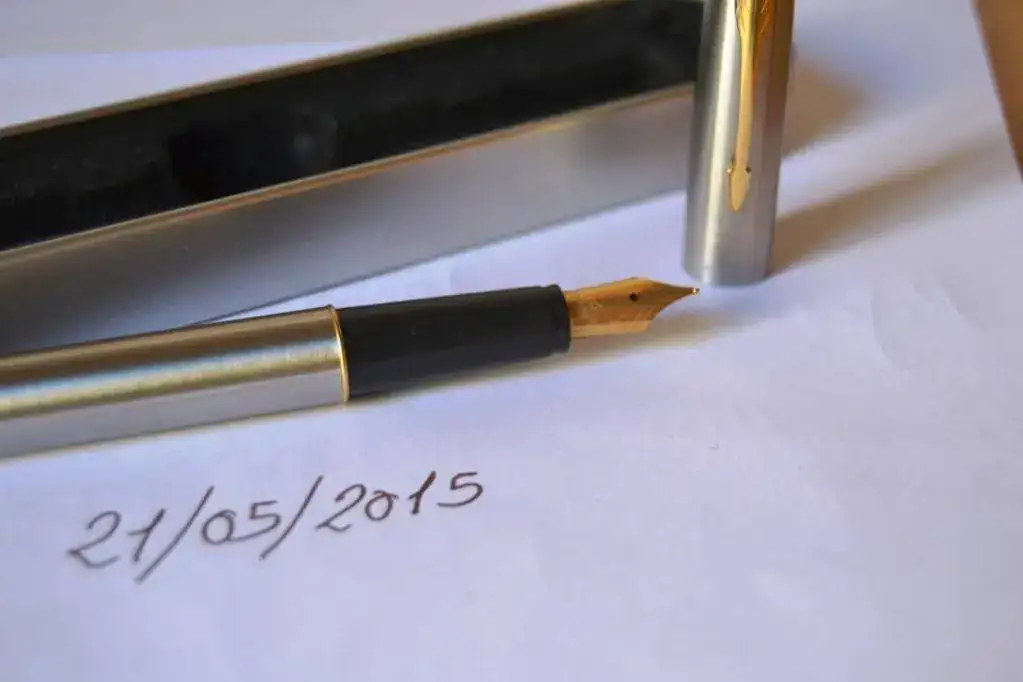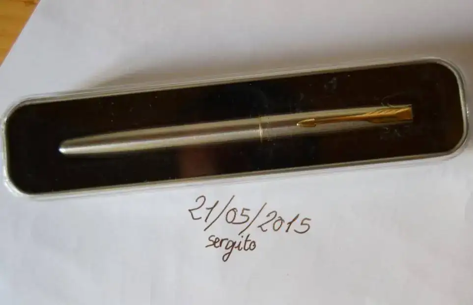 Pongo en venta esta Parker Frontier en acabado flighter (metálico) y GT (adornos dorados). La pluma está usada por mí únicamente, así que la pongo a la venta por 25€ con la caja de plástico que se ve en las fotos. Venía también con un convertidor de pistón o émbolo (nunca se como llamarlo) pero no lo encuentro, si lo encuentro, sería inmediatamente enviado al comprador sin ningún coste adicional, por supuesto.