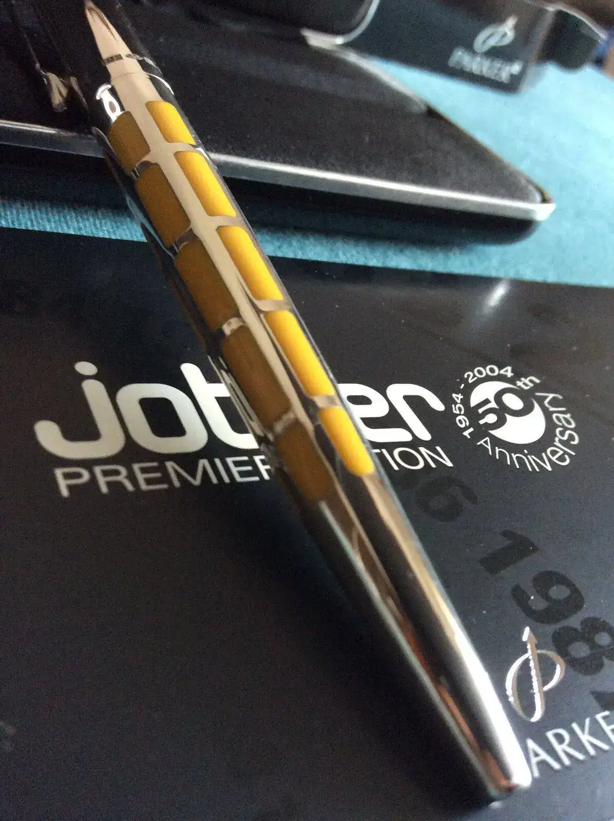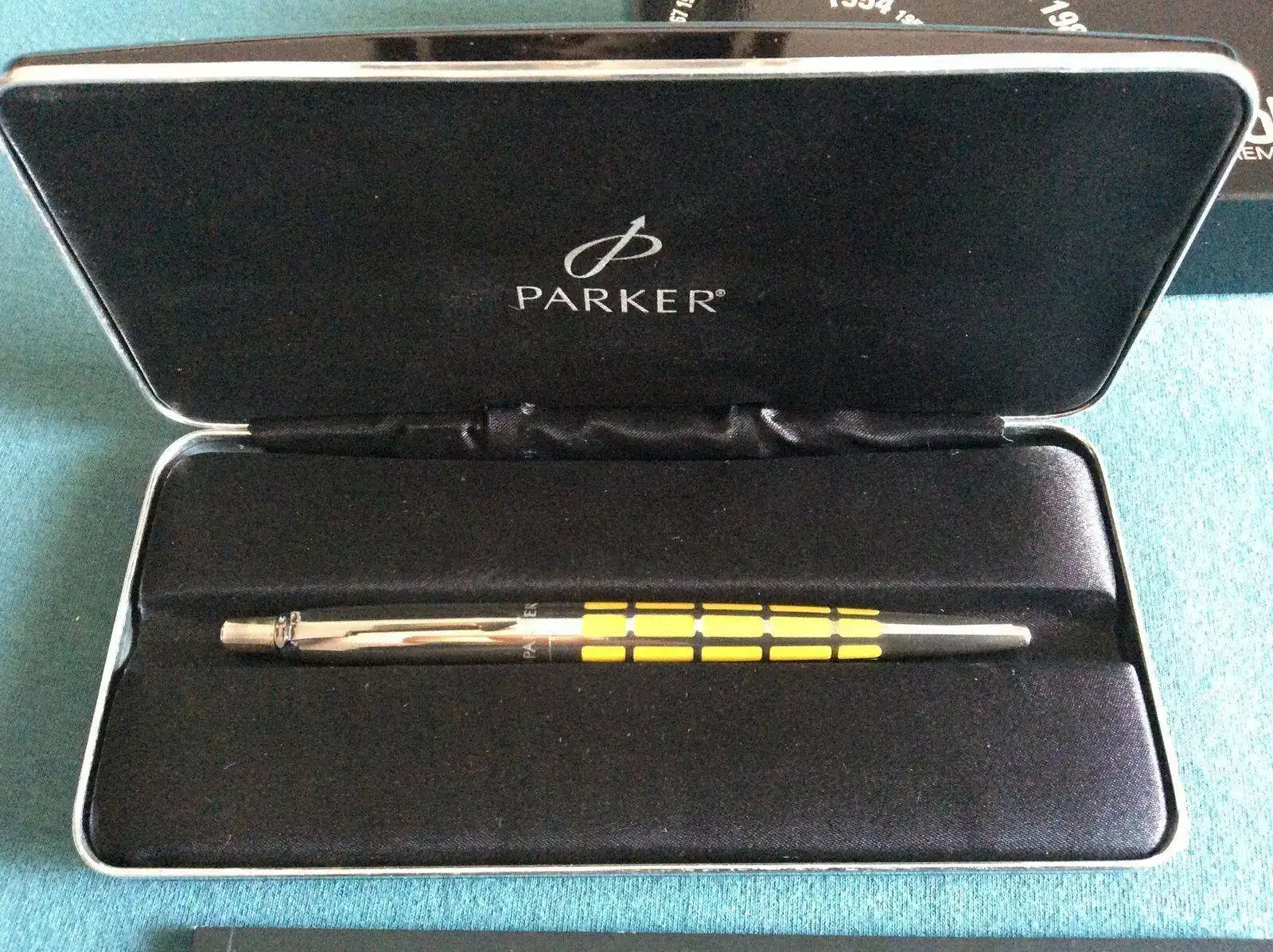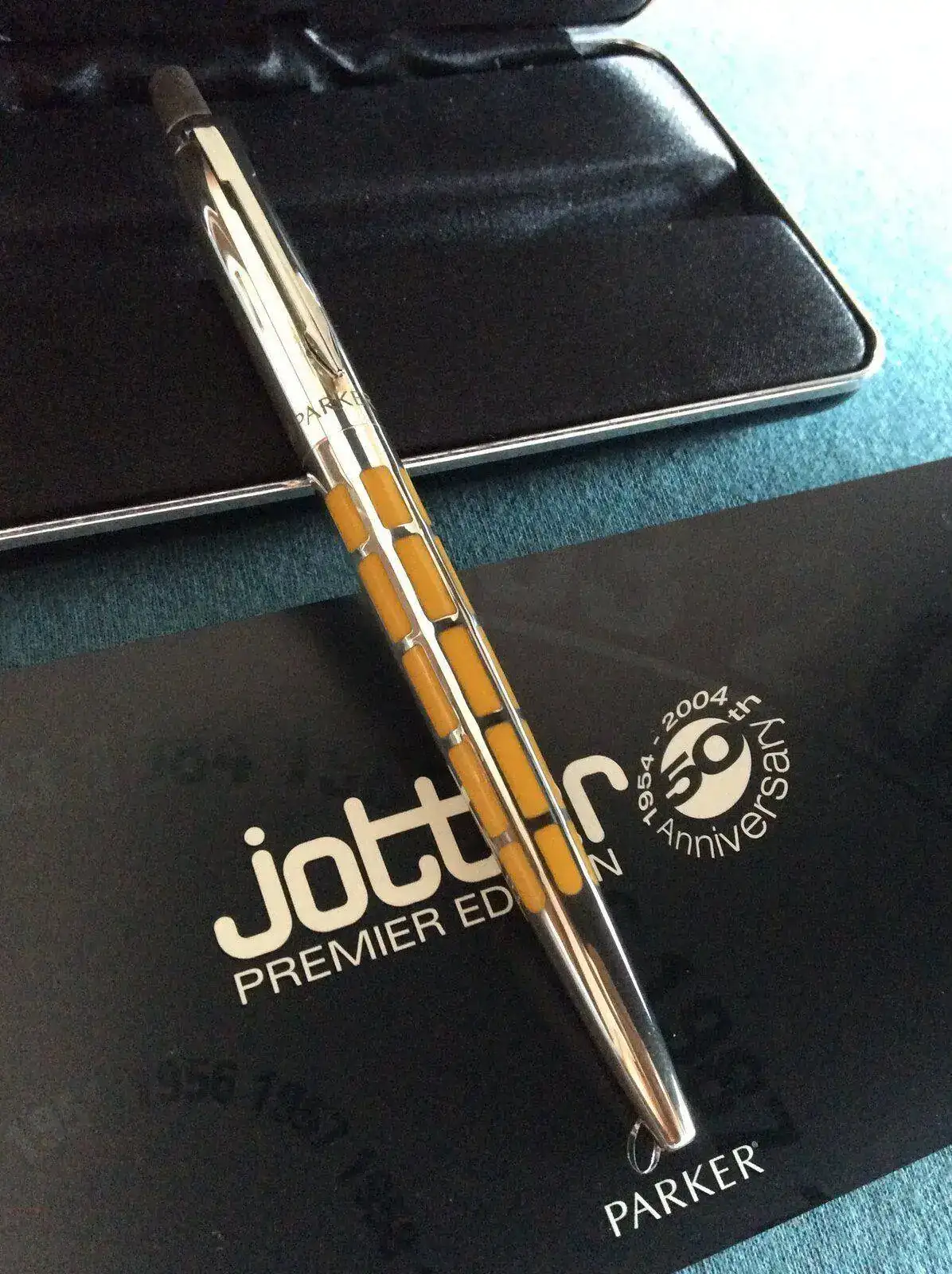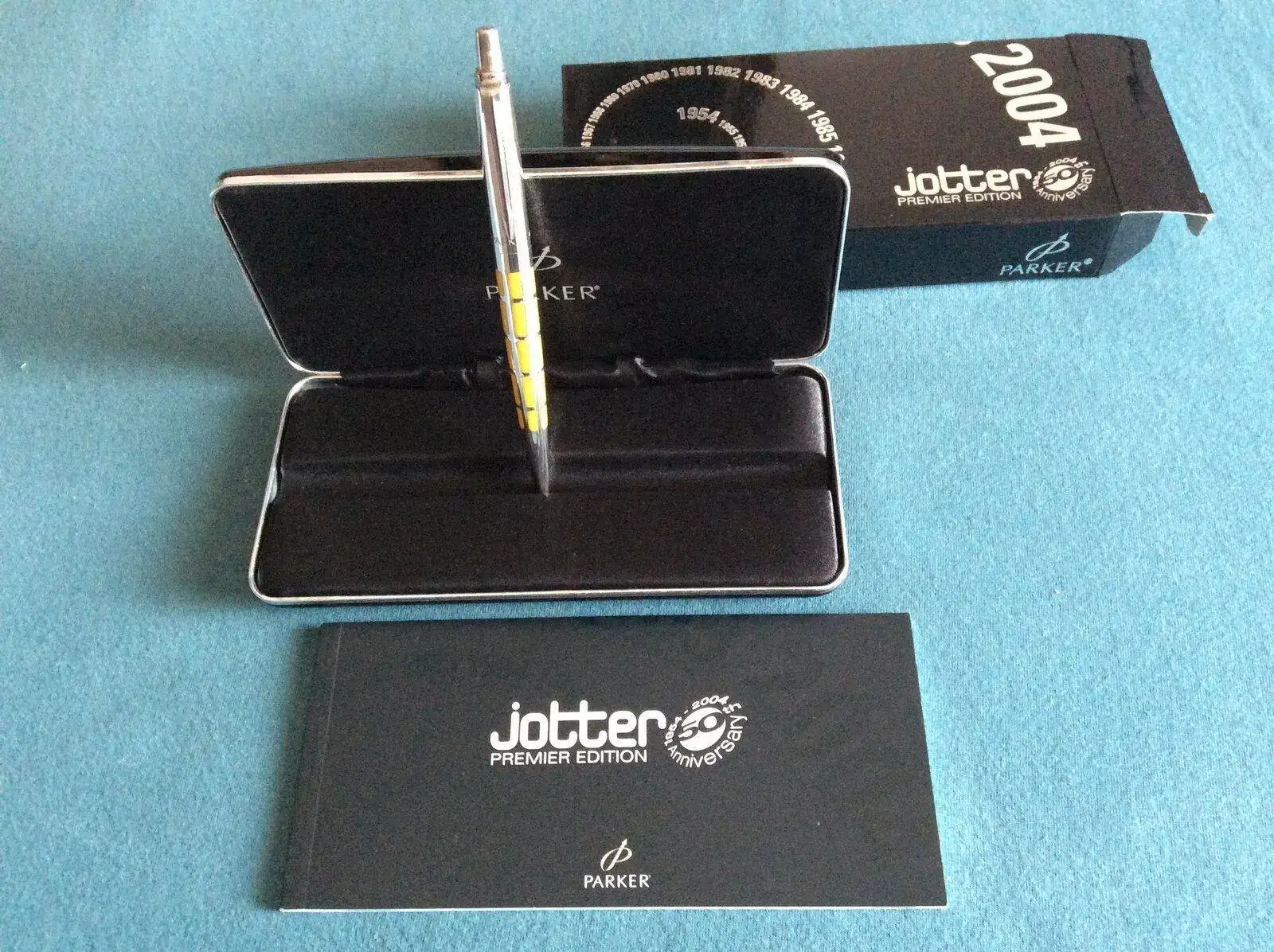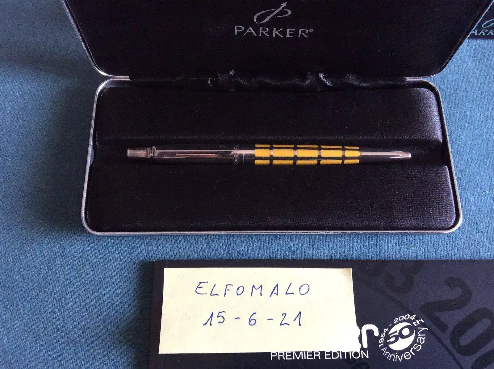 Se vende bolígrafo Parker Jotter Premier Edition 50 th. Confeccionado en plata , color Saffron yellow. Fabricado para conmemorar el 50 aniversario del Parker Jotter. Totalmente nuevo, con cajas y documentación. 130 €.