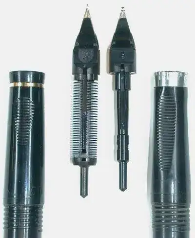 El plumín y la sección de agarre con muy similares a la Parker 75 pero presenta divergencias en el alimentador interno como se observa en esta imagen procedente del foro Fountain Pen Network.