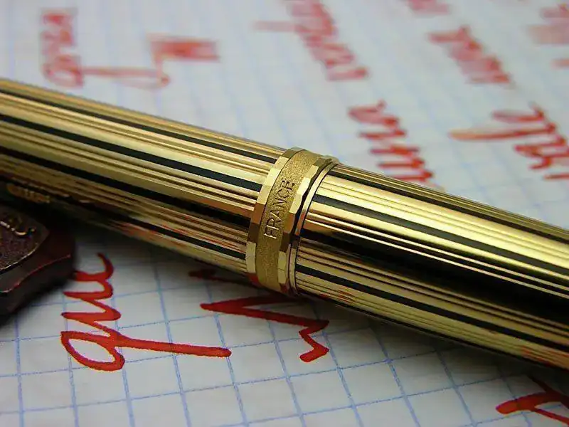Los primeros acabados ofrecidos en la serie Premier fueron la Presidential, una pluma en oro macizo de 18 o 9 quilates con la superficie terminada en godron rayado con un amplio espaciado, de corte profundo y grabado longitudinal, muy elegante. Otro modelo fue el Athenes, que es una pluma chapada en oro de 22 quilates con bandas de laca negra alternantes, creando un patrón de rayas contrastado. También hubo modelos plateados y dorados en Grain d'Orge, (grano de cebada, fino). El cuarto acabado era una laca china marrón moteada muy elegante y finalmente, un clásico de la marca, Cicelé, en plata maciza con el típico patrón de cuadraditos. Este patrón fue elegido por Kenneth Parker para editar un encendedor de cigarrillos fabricado en Reino Unido en la década de 1960 (aparece en el post número 332 del hilo https://relojes-especiales.com/threads/además-de-estilográficas.351893/) y es uno de los acabados más exitosos y reconocibles de la casa a lo largo de más de 20 años, que ha sido utilizado en diferentes líneas de producto.