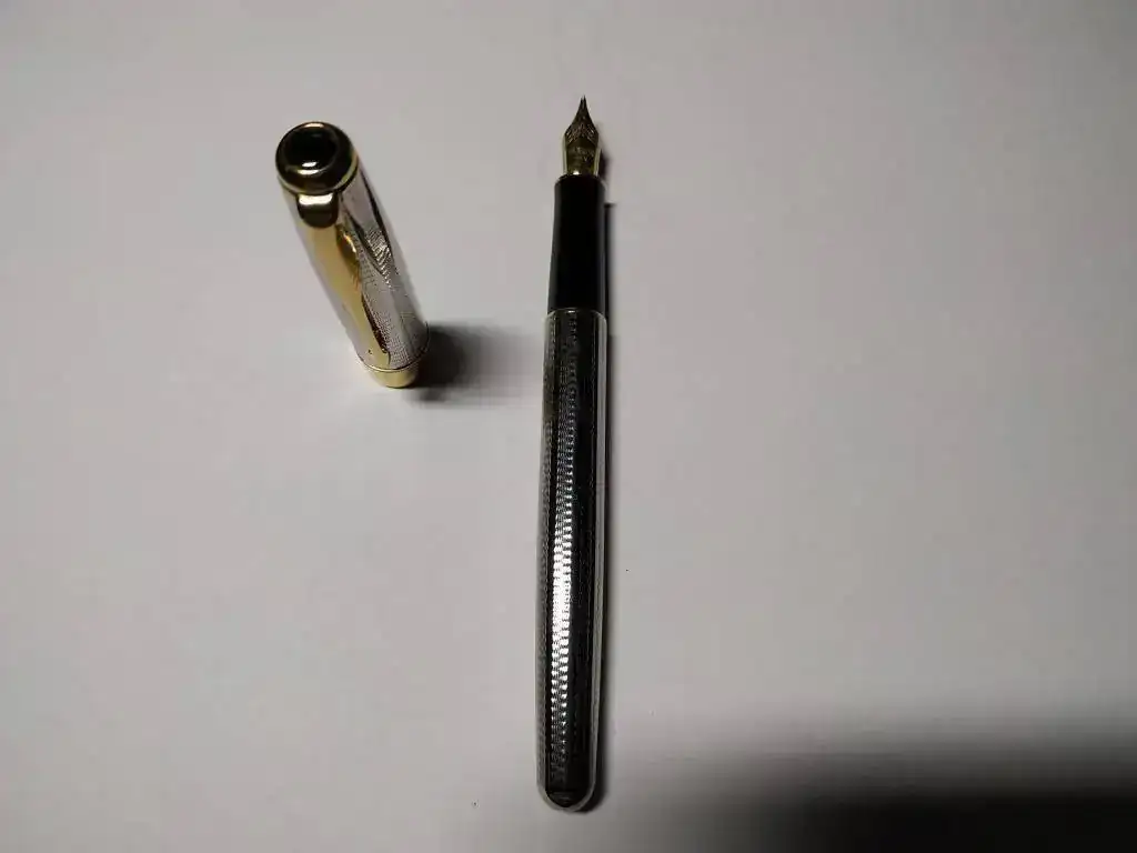 Vendo estilográfica Parker Sonnet plateada con los adornos dorados.