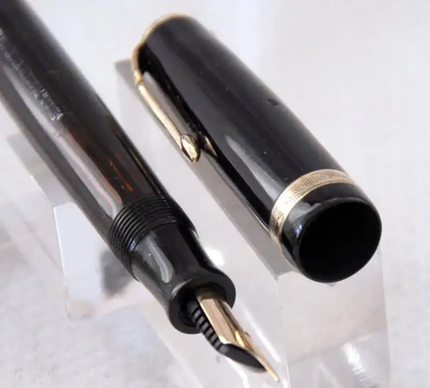 Hermosa y restaurada Parker Vacumatic Striped Rayas verticales en barril Negra y Oro.