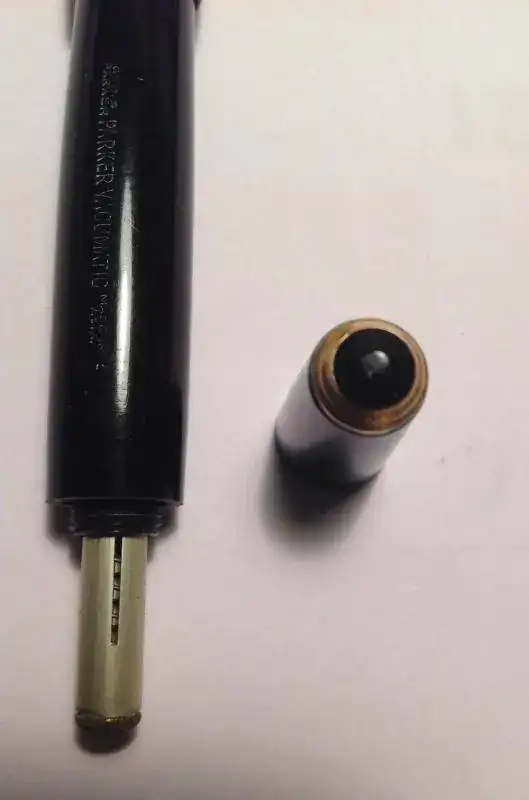 A raíz de un tema que no viene al caso, ayer estuve rebuscando en los cajones para recuperar unas Parker Vacumatic que fui adquiriendo por ebay hace ya algunos años y que dejé de lado por motivos que ya no recuerdo. Ni sabía donde estaban. Encontré primero unas, luego otra y hoy, cuando ya había abandonado la búsqueda, esta mañana ha aparecido la más especial de todas y me ha parecido una buena idea presentarla en el foro.