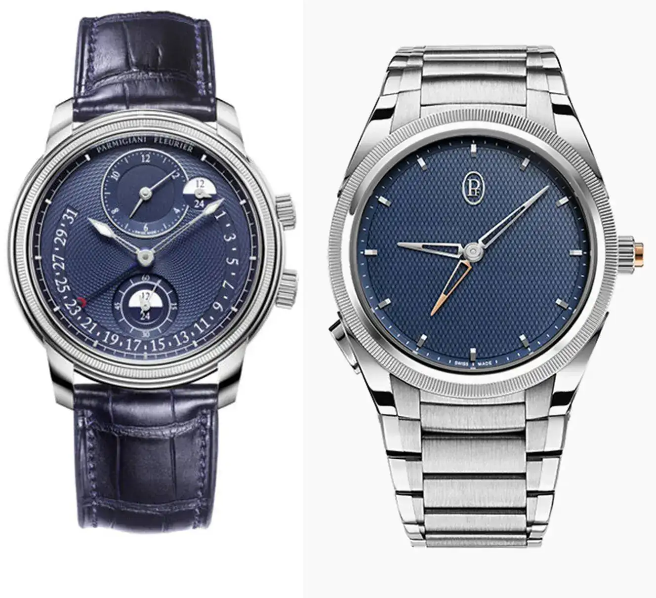 Mire usted que un servidor no es de esferas texturizadas, pero hay que reconocer que al tener texturizados ese/os puente/s del movimiento de igual manera que la esfera todo ello hace un efecto fantástico. Ese azul es precioso y se denota la calidad en los acabados de todos los elementos de esa esfera; muy bonitos también los pulsadores en forma de lágrima e integrados en ese diseño de asas que me remonta a pensar en las cajas y asas de antaño, es un diseño muy muy bonito y fluido, aunque quizá lo que más me guste es el toque que le da ese bisel, es una preciosidad ese bisel y emho le da una fuerza visual extra a todo el conjunto (que ya de por si la tiene).