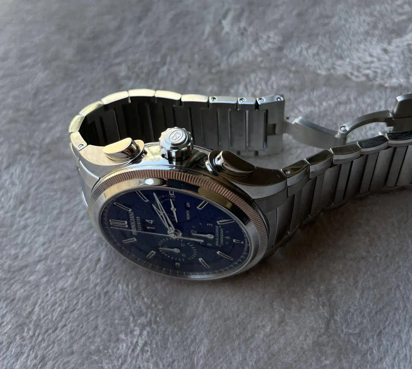 Por todo ello Parmigiani Fleurier dispone de los recursos necesarios para realizar verdaderas obras de alta relojería tanto en sus materiales como en acabados, e incluso las más grandes complicaciones (repetición de minutos, complicaciones astronómicas, etc…). Y como claro ejemplo está la pieza objeto de este texto, la cual tiene escasamente año y medio de vida desde su lanzamiento pero ya tiene su buena fama ganada. Por ejemplo fue finalista a finales del 2020 del premio al mejor crono en el GPHG quedando a escasa distancia del ganador en ese apartado (el Streamliner crono de H. Moser esfera negra…). Este Tondagraph GT aúna apartados estéticos, en su caja y brazalete, que son señas de identidad de la marca con detalles novedosos extremadamente interesantes. Simplemente conociendo que su diseño corrió a cargo del responsable, ya veterano, de diseñar en su día el VC Overseas original, uno ya se puede esperar ciertas emociones.