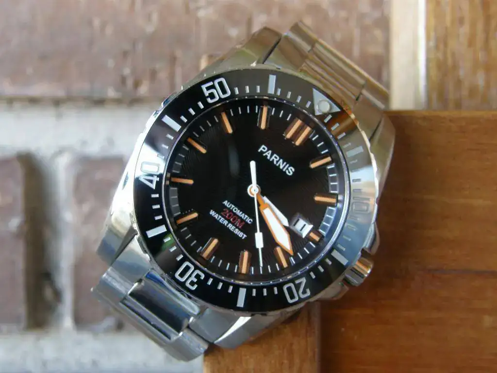 Otro reloj de Parnis de muy buena calidad....esta en muy buen estado y armis completo. Un reloj contundente y resistente.No tiene marcas, quizas algún pelillo en las partes del armis pulidas a espejo y en el cierre pero cuesta verlos.