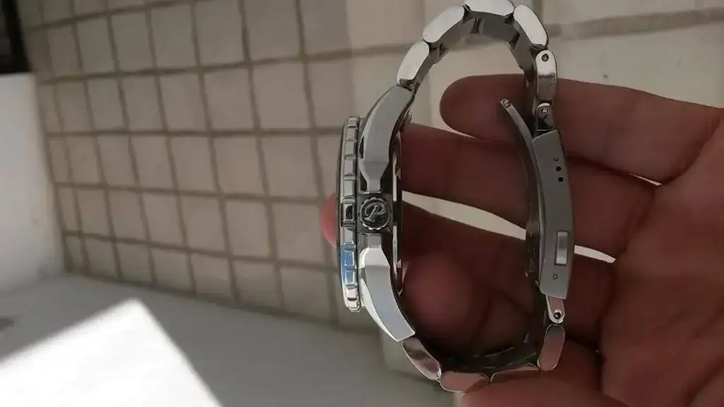 *Bisel: (lo más reseñable de todo el reloj) es de cerámica. Destaco que está quebrado a los 45min pero no se despega, ni se mueve, nada, es como si estuviera perfecto. También una particularidad es que la perlita no está centrada y pega hacia la izquierda. Mecánicamente el bisel está desfazado 1 segundo a la derecha pero funciona perfectamente y lo puedes acomodar para que no se vea desfazado. Corre correctamente y tiene excelente tacto. Aún así como está, no lo veo nada mal.