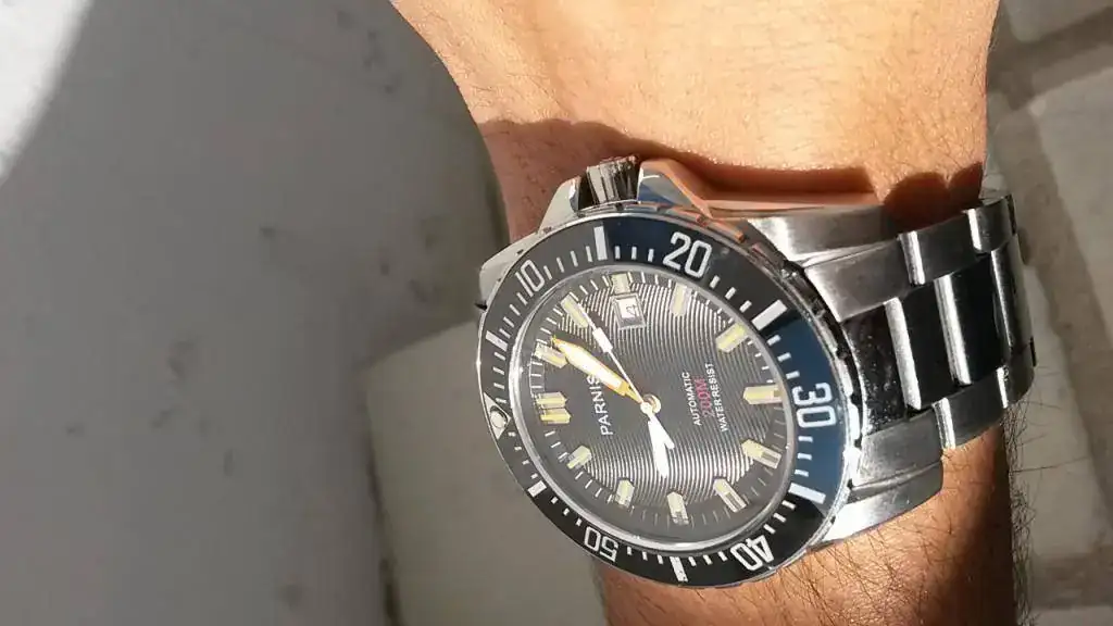 Bueno, es un reloj de aproximadamente Julio del 2014, en su momento fue mi reloj de batalla (no quiere decir que no lo cuidaba) y se nota con las microrayas (si quieres un reloj como nuevo, este no es para ti). Jamás ha tocado el agua, más que el típico para lavarlo, pero nunca sumergido; en teoría es un 200m pero no les puedo garantizar la estanqueidad pues es chinito. Obviamente jamás ha sido abierto.