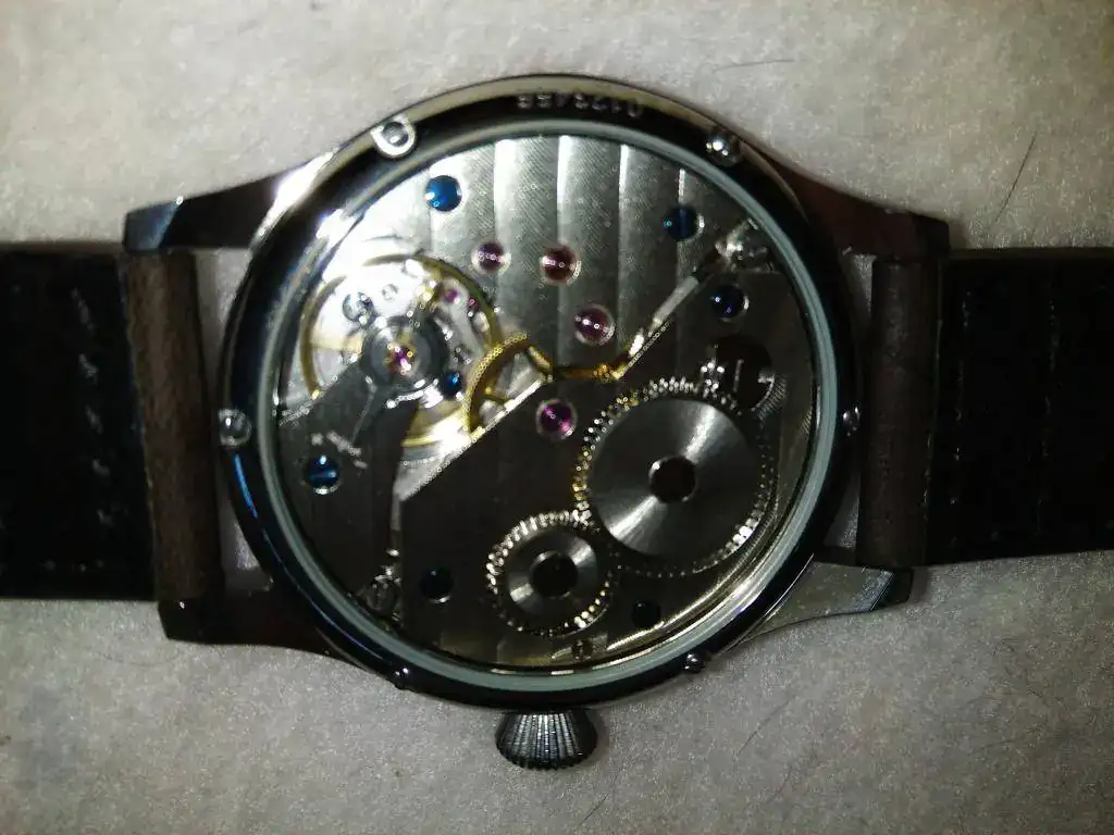 La maquinaria, la conocida Asian 6497 de cuerda manual, que es la razón por la que me decidí por este modelo, parece funcionar bien, no puedo dar datos de exactitud aún, pero en medio día ha mantenido muy bien la precisión, desde luego ni se ha parado, ni me ha adelantado cinco minutos a la hora, lo cual ya es un alivio con la lotería china.