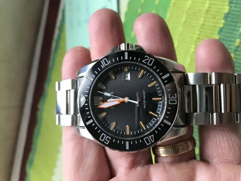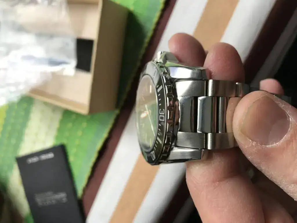 Saco para venta este diver de Parnis,su estado es nuevo(solo le he quitado los plásticos para verlo mejor,le he desenroscado La Corona para darle cuerda y funciona a la perfección,el bisel va perfecto y La Corona también,parece mentira que cueste 110 euros(lo que me ha costado a mi)para la calidad que tiene,un cordial saludo y felices fiestas.