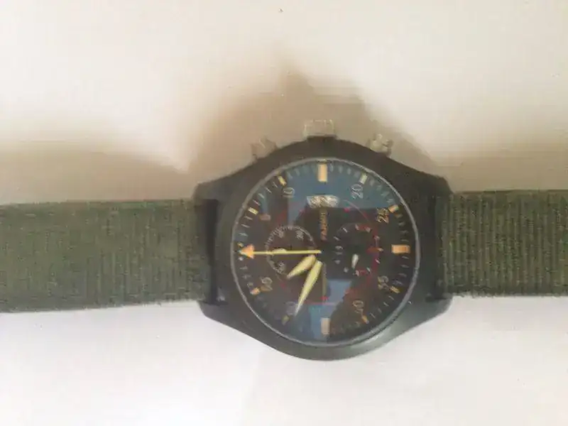 El reloj funciona perfectamente y su estado es bastante bueno un 90%, se entrega con correa cordura verde envejecida, el precio de este reloj es de 75€ envio certificado incluido.