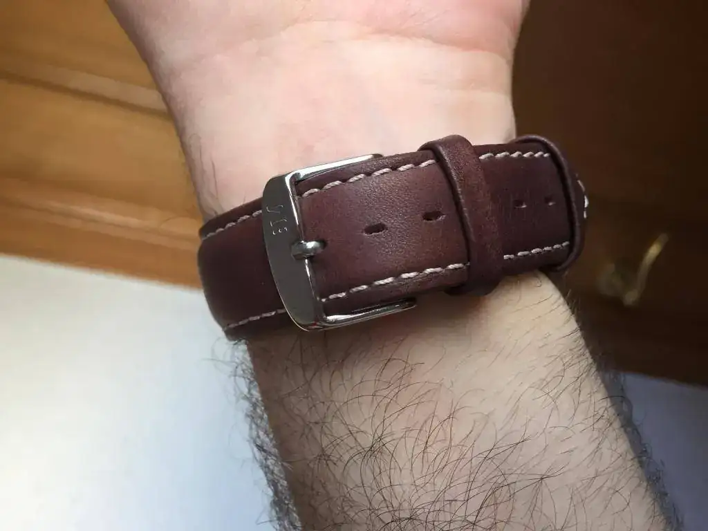 En cuanto a la correa de piel de culo de dragon, fue sustituida por una correa de piel en condiciones y tiene solo 3 puestas...