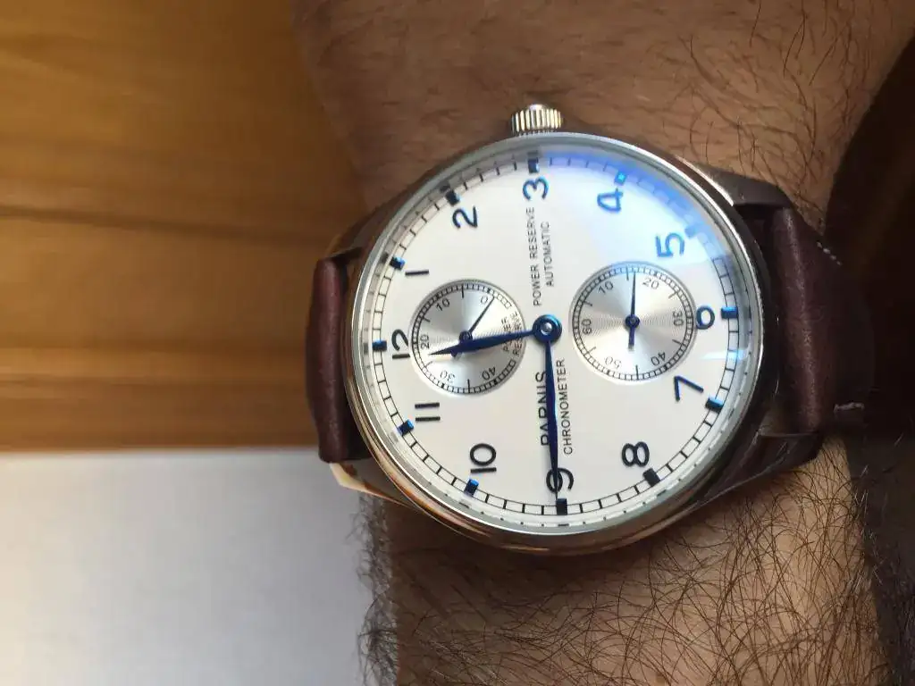 [TD]43mm Parnis Portuguese Automatic Power Reserve White dial Watch[/TD]