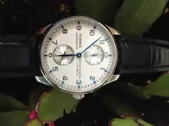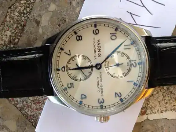 Hola, en mi objetivo de hacer caja y generar hueco a los que vienen, saco tambien, este Parnis,quiza de los mas conocidos en el foro. Con sus 43mm,las caracteristicas son: Movimiento automático (Sea-Gull), parada de segundero,reserva de marcha, remonte manual, caja de acero de 42, cristal mineral ligeramente abombado y fondo visto. Este relojito esta en perfectas condiciones no presentando ninguna señal de uso.