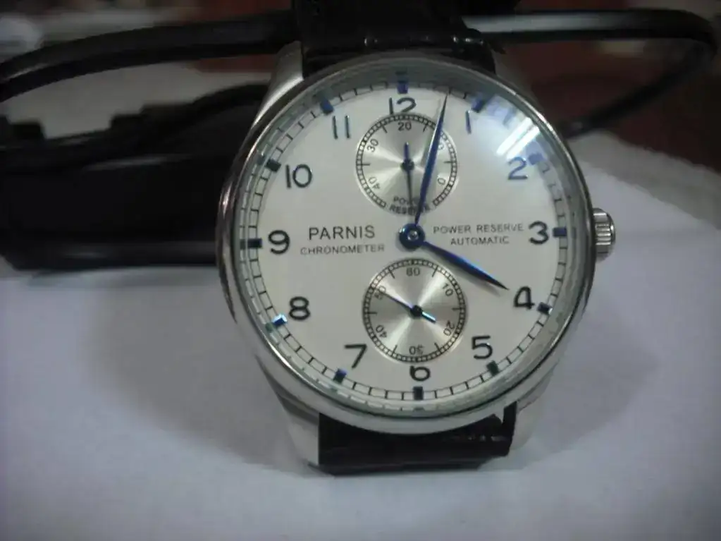 Parnis Power Reserve, de sobra conocido en este foro. 43mm de diámetro, carga automática / manual, indicador reserva.
