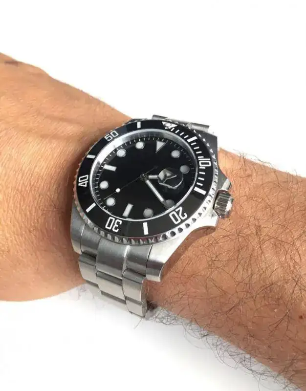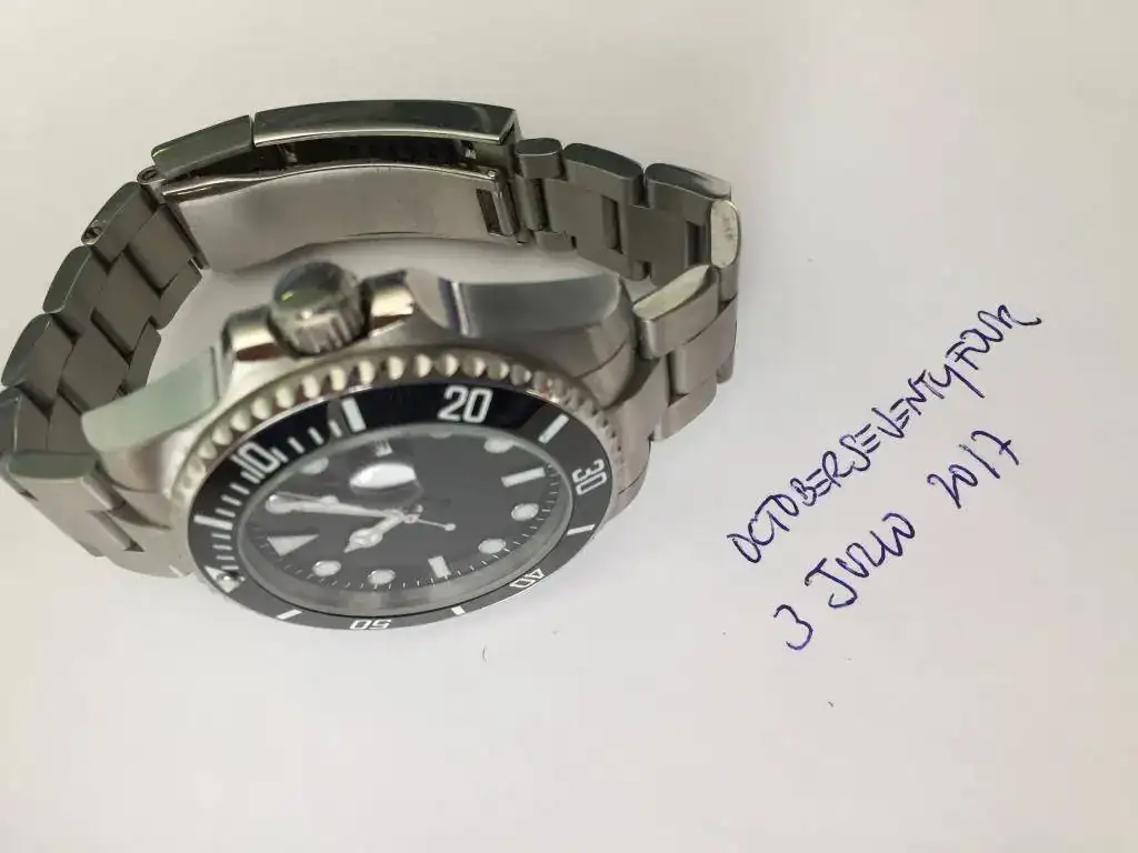 Parnis Sub solo estrenado para darme cuenta que es muy mazacote para mi muñeca. Tiene detalles de calidad como el cierre con microajuste, el bisel unidireccional y la corona con junta. Iluminación en azul, lo cual es curioso.
