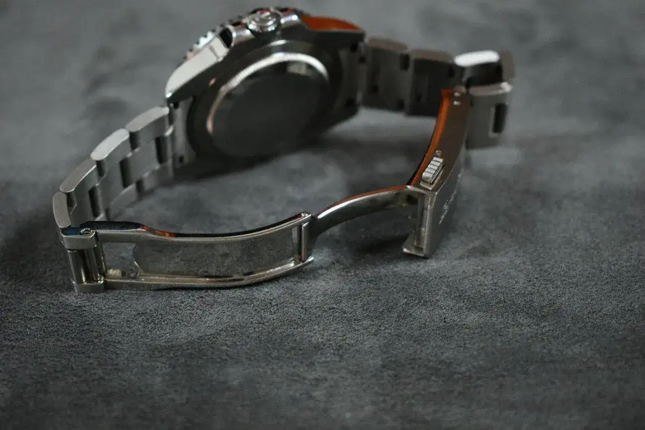 Tiene cristal de zafiro, bisel cerámico y, un brazalete completamente macizo de una calidad muy alta.