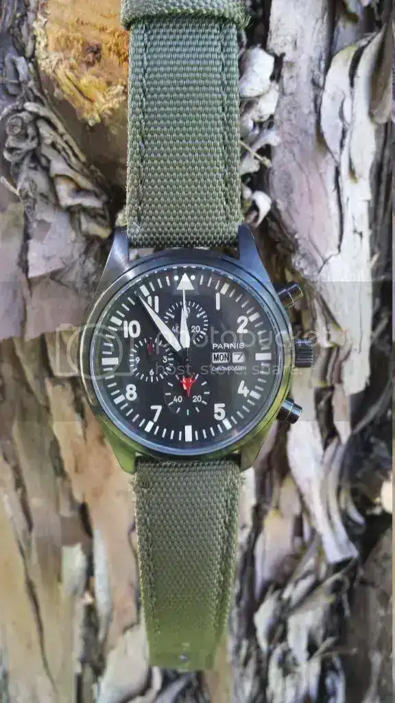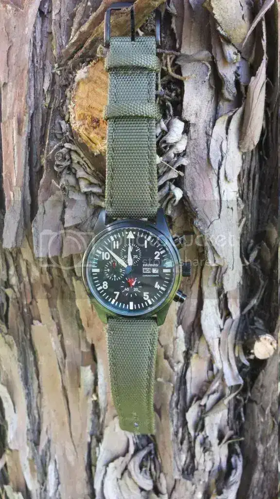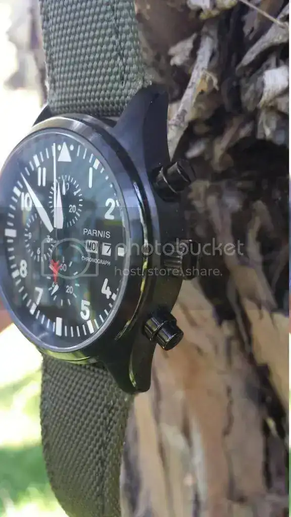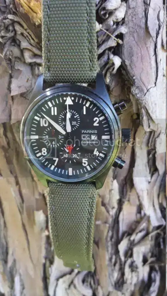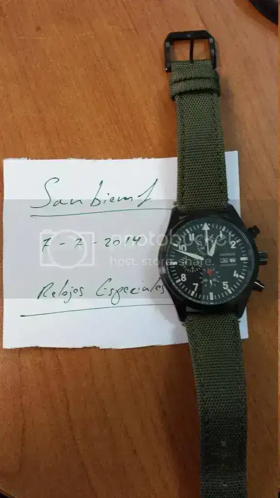 Esa vez saco a la venta este homenaje a Parnis Top Gun en pvd, con correa tipo tela de barco en color verde oliva que a mi parecer esta a un 80% de uso. El reloj lo compré a un compañero del foro hace dos semanas. Se me ha cruzado otro en el camino y todo no puede ser. Bueno que os voy a conyar que sepais...