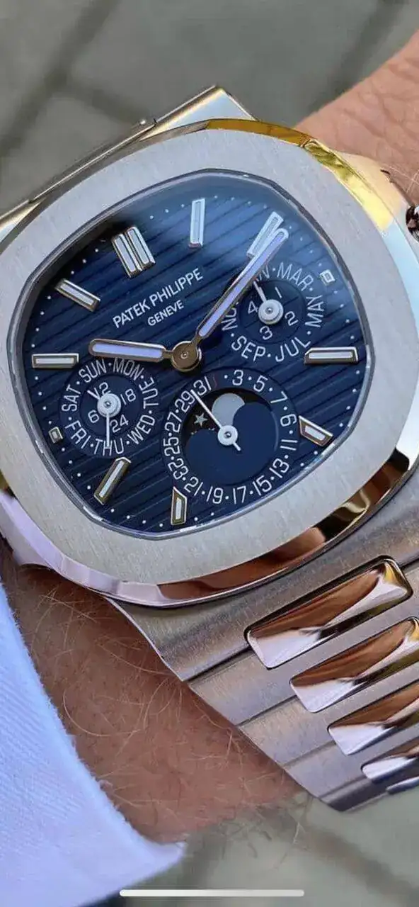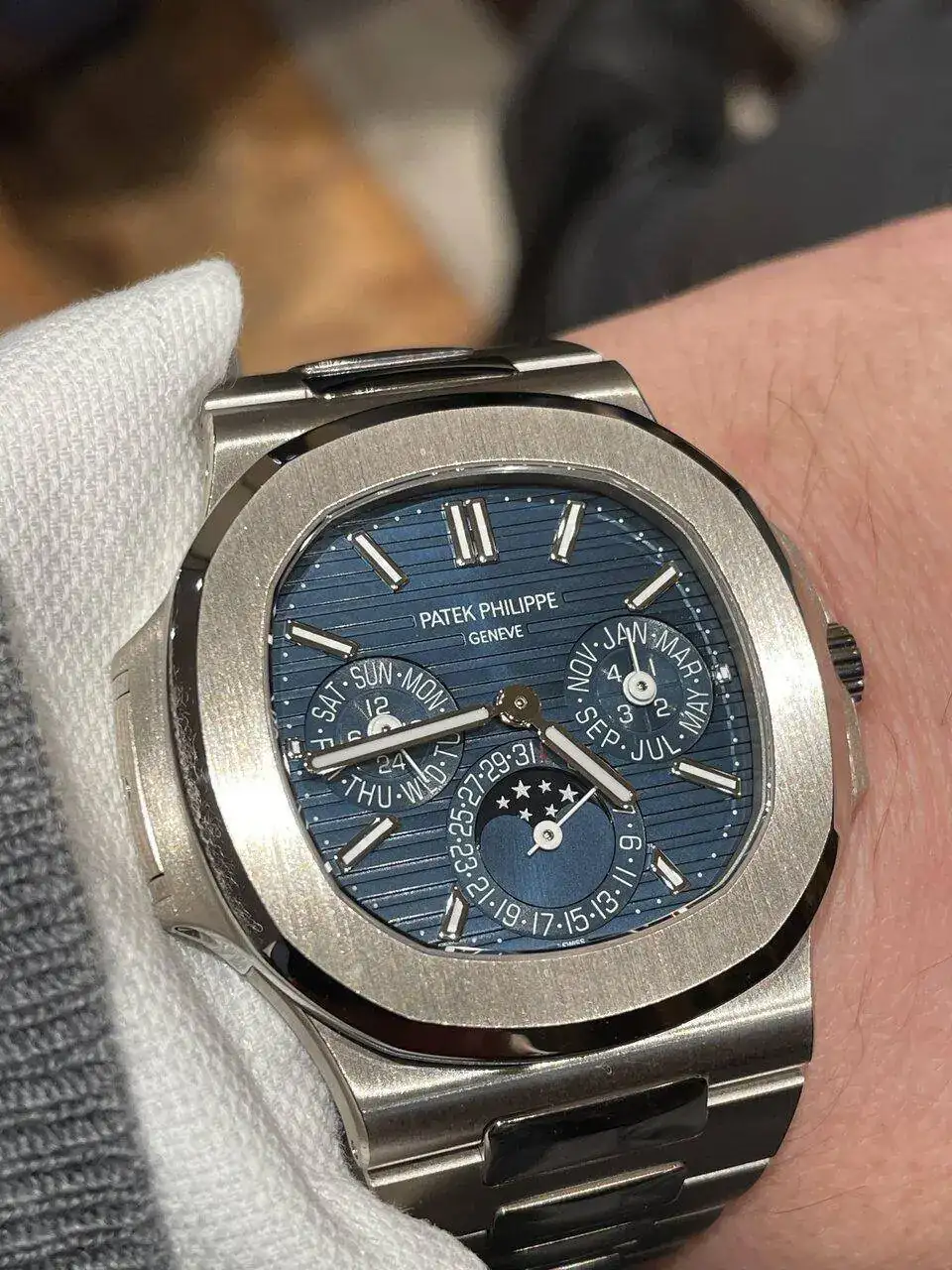 Me he decidido a publicar este hilo, no solo para darle vida al subforo de patek, sino también porque no he podido leer muchos comentarios de compañeros con respecto al nautilus calendario perpetuo, me parece una pieza simplemente maravillosa, espectacular, con un calibre absolutamente increible dado sus dimensiones y altura, que lo hacen de una belleza apoteósica, para un reloj discreto, -oro blanco- y sobre todo con una caja extremadamente baja que no llega a los 9 mm de altura. Sin duda su microrotor ayuda a realzar la belleza del calibre al hacerlo más visible como sucede con otros hermanos de colección salvo el 5712 que también tiene microrotor.