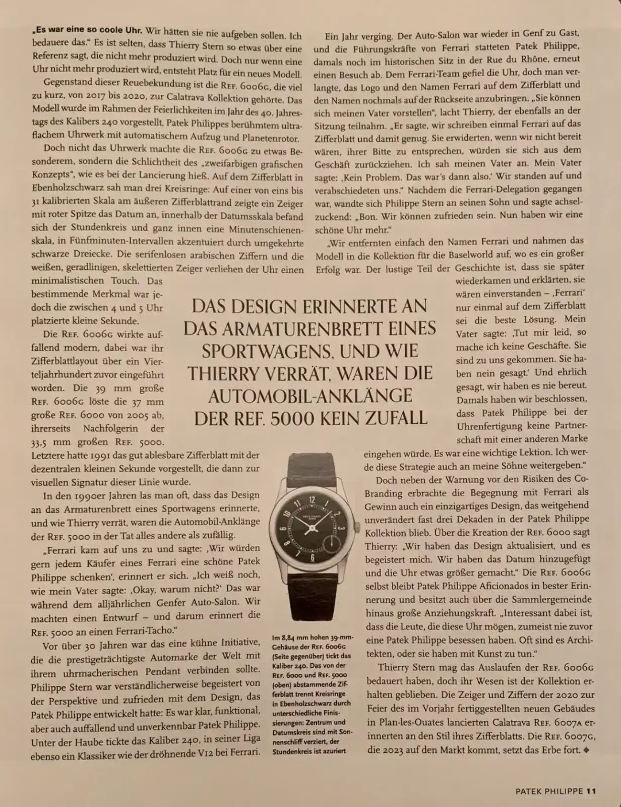 Aunque el proyecto se canceló (Ferrari quería su logo visible, algo que Patek no aceptó), de ahí surgió la referencia 5000: un diseño muy atípico para Patek Philippe en ese momento.