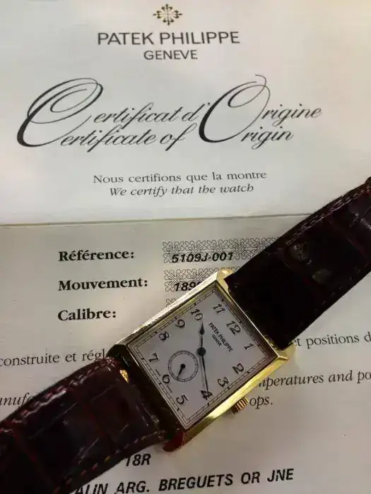 Patek philippe 5109j en oro rosa, tiene algunos pelillos como se dice por aquí de un uso esporádico. El reloj es del 2007 comprado en un co nacional por su anterior dueño. La correa original que lleva puesta de color marrón esta al 75%, creo yo. El reloj viene completo con su caja,cartón exterior y papeles originales.