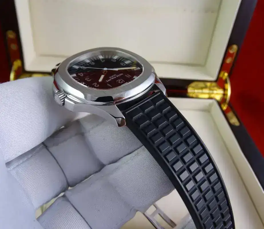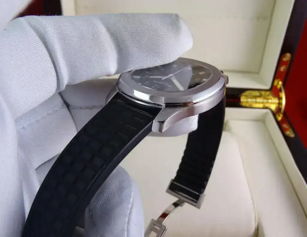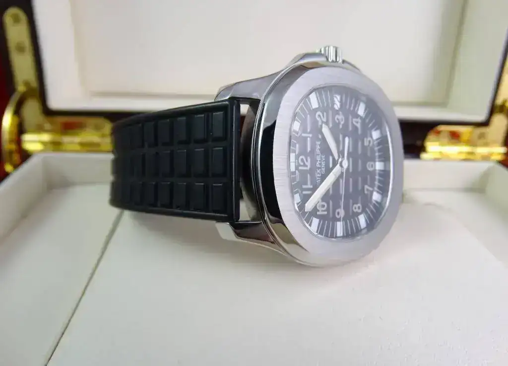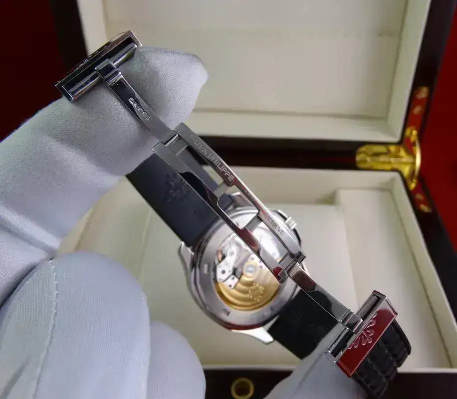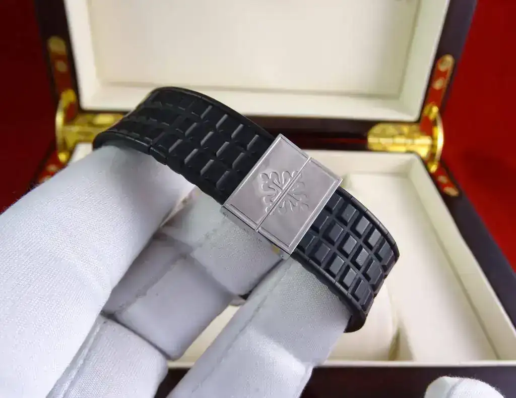 Se trata de un reloj, que por su forma, no parece pequeño a pesar de los 38mm de su diámetro de caja. Además es probablemente el reloj más cómodo de todo el catálogo de Patek, precisamente gracias a su caja, pero también a una correa de caucho fantásticamente realizada. Es un reloj concebido para ser deportivo, pero que por sus formas elegantes, encaja perfectamente con atuendos mas elegantes.