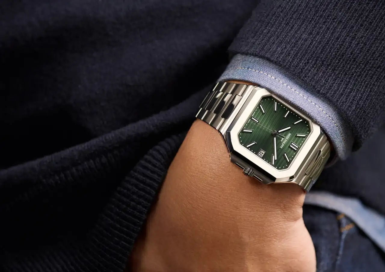 La esfera es de color verde, y es de suponer que en el futuro aparecerá en otros colores ¿Azul?. Probablemente no, porque ya la han puesto en el mixto acero/oro.