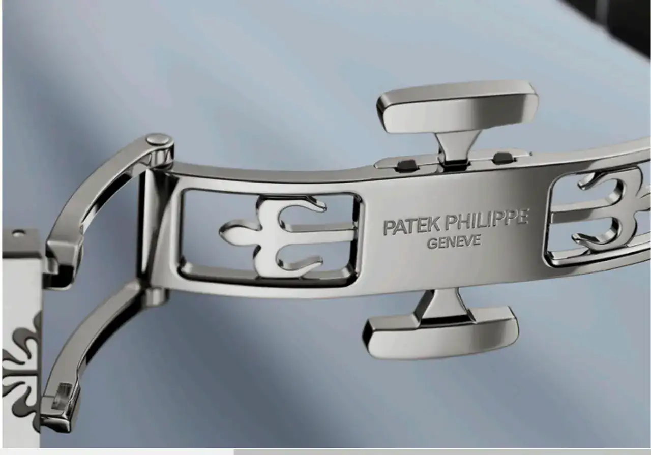 - Brazalete de acero con ajuste con bloqueo y cierre desplegable patentado Patek Philippe