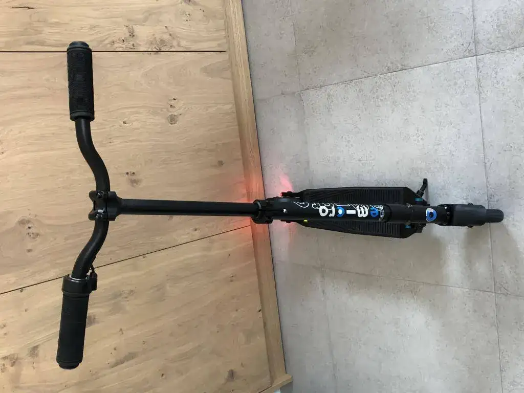 Frenado: doble, por la maneta (eléctrico) y por el guardabarros trasero (clásico, mecánico y eléctrico a la vez).