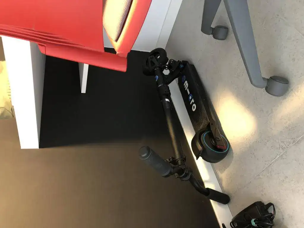 Plegado bajo el escritorio (para comprobar lo poco que ocupa)