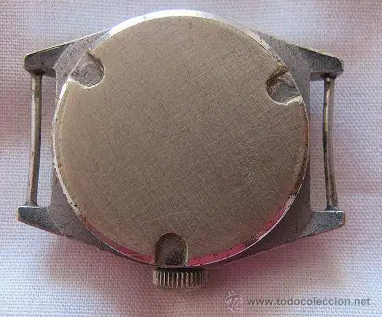 Reloj de gran calidad de la firma suiza Paul Ditisheim, modelo Solvil, firmado en máquina y esfera. Máquina de 15 rubíes con 3 ajustes y volante bimetálico partido y 3 chatones en oro. Esfera de tipo militar con material fluorescente. Es un reloj de tamaño pequeño ya que mide 27 mm. de diámetro sin contar la corona de cuerda y 35 mm. entre asas. Fondo de acero roscado y caja en metal cromado.