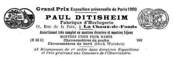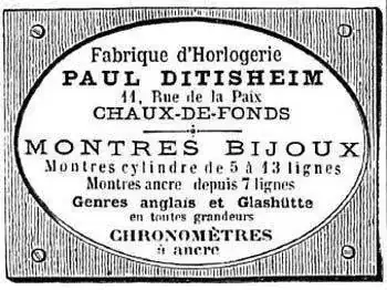 PAUL DITISHEIM nació en 1.869 en LA CHAUX-DE-FONDS cuna histórica de tradición relojera, en una familia ya integrada en la misma pues conocida era la implicación de su familia en la marca VULCAIN. A la edad de 13 años se licenció con honores en la HORLOGICAL ESCUELA de La Chaux-de-Fonds.