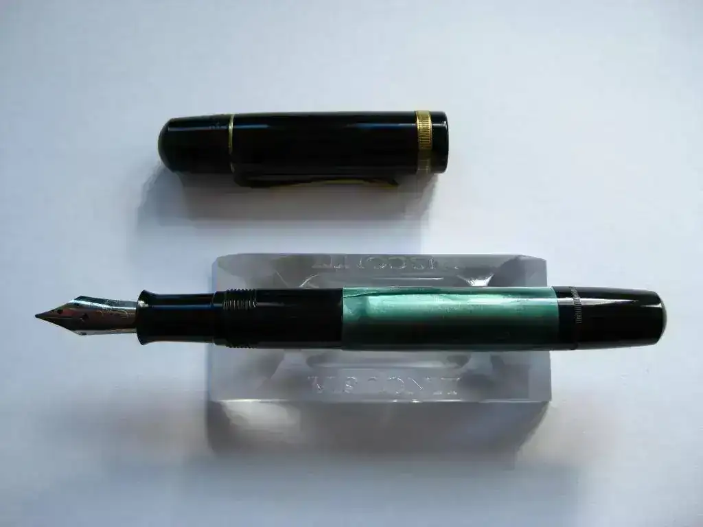 Hace unos días me hice por ebay de una Pelikan 100n. Su aspecto, como podréis observar por las fotografias, era muy bueno, además venia con un portaminas. su sistema de carga funciona perfectamente. Le llené, y me puse a escribir con ella. Su punto es medio y se adapta muy bien a mi tipo de letra. Pero... al poco de estar escribiendo dejo de fluir la tinta. Le accioné el embolo para mandar un poco de tinta al plumin, sin problema. Seguí escribiendo y, de nuevo, la pluma se secó.