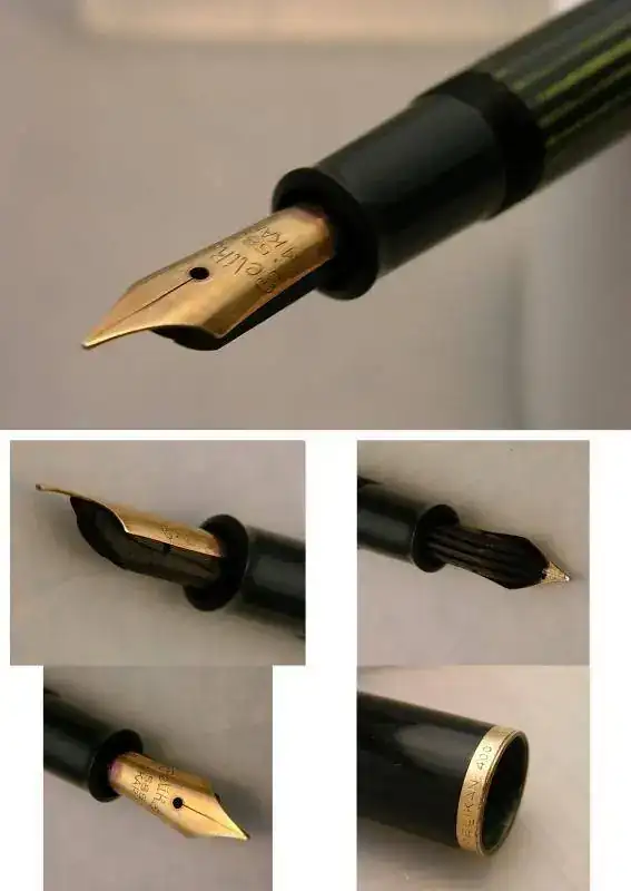 Ofrezco para su venta esta estilográfica PELIKAN modelo 400 en color negro rayado con detalles en dorado.