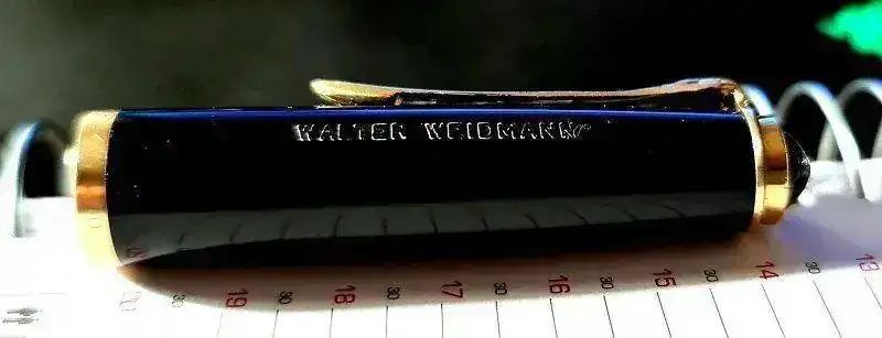 Cuando la tiene terminada surge el gran problema que puede dar con todo al traste. El capuchón que tiene de Pelikan 400 NN tiene el nombre de un anterior propietario grabado. ¡Madre de Dios! ¡Esto es la hecatombe! ¡El Universo se va al diablo y nos pilla a todos con los gayumbos en los tobillos! ¡Venga ya! Si. Soy un purista, pero de las afueras, caray. Así que ahora es mi Pelikan Walter Weidmann.