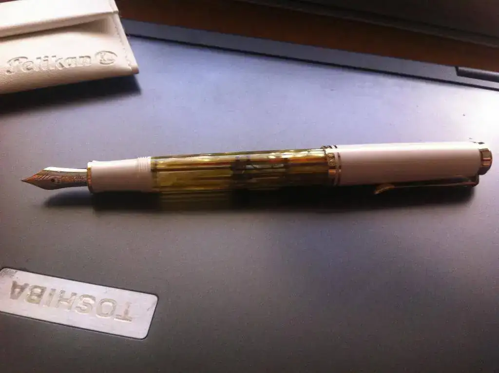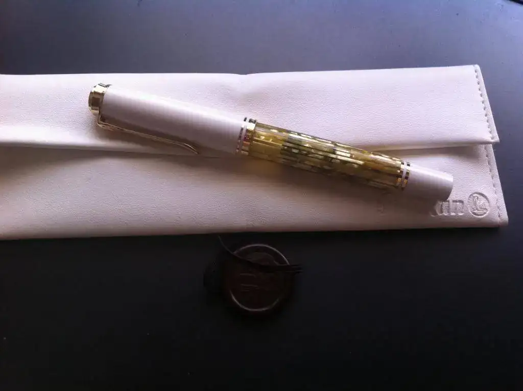 Se vende Pelikan 400 White Tortoise, con papeles, caja exterior, caja interior y funda. La estilográfica está en perfecto estado, monta un plumín de 14K bicolor EF.